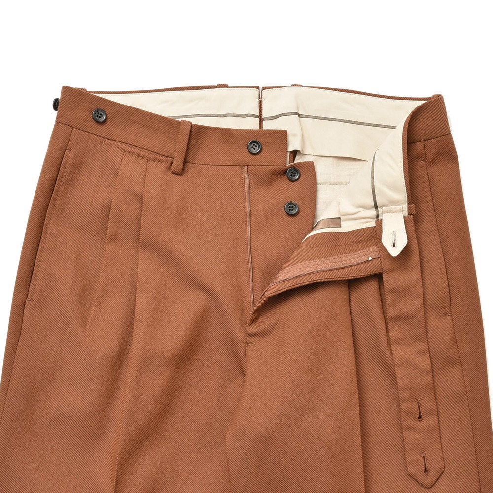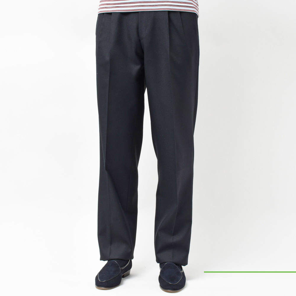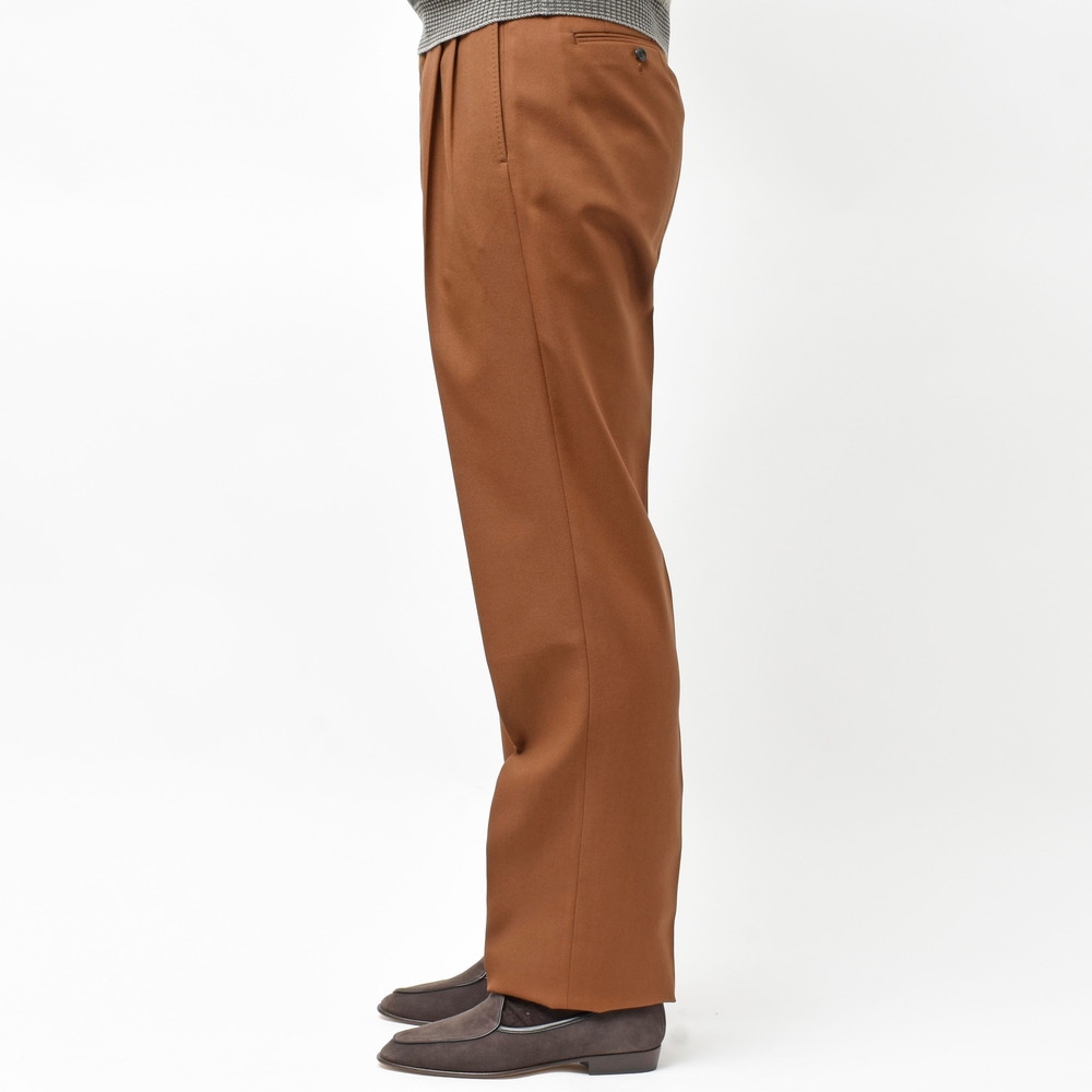 高密度なシャンブレーギャバジンを採用したla favola(ラファーヴォラ)の2プリーツパンツはクラシカルな雰囲気がありながらも、実際には非常にモダンなスタイルにフィットする親和性の高さが魅力の存在です。