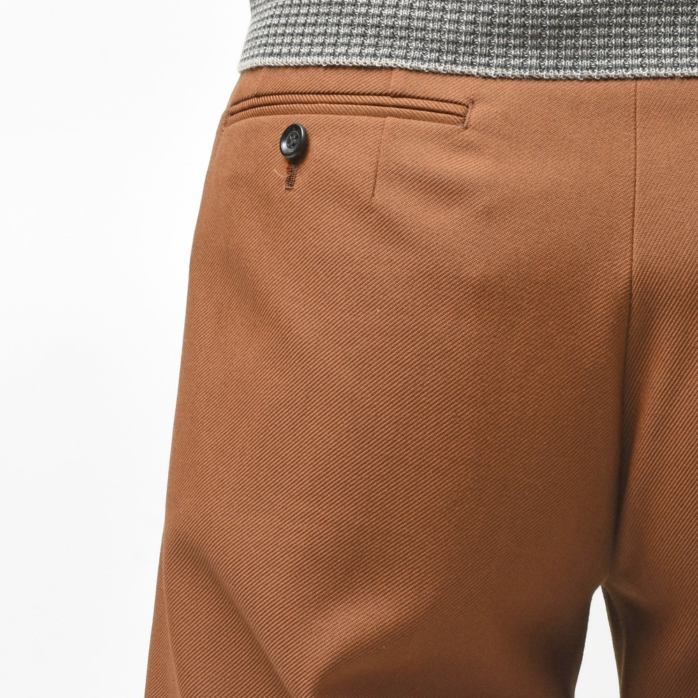 持ち出しの長さや裏地の仕様などを見ても非常にクラシックな様相でして、それを巧みにモダンなスタイルに落としこまれたパンツは中々どうして素敵な逸品なんです。
