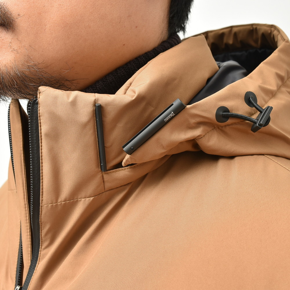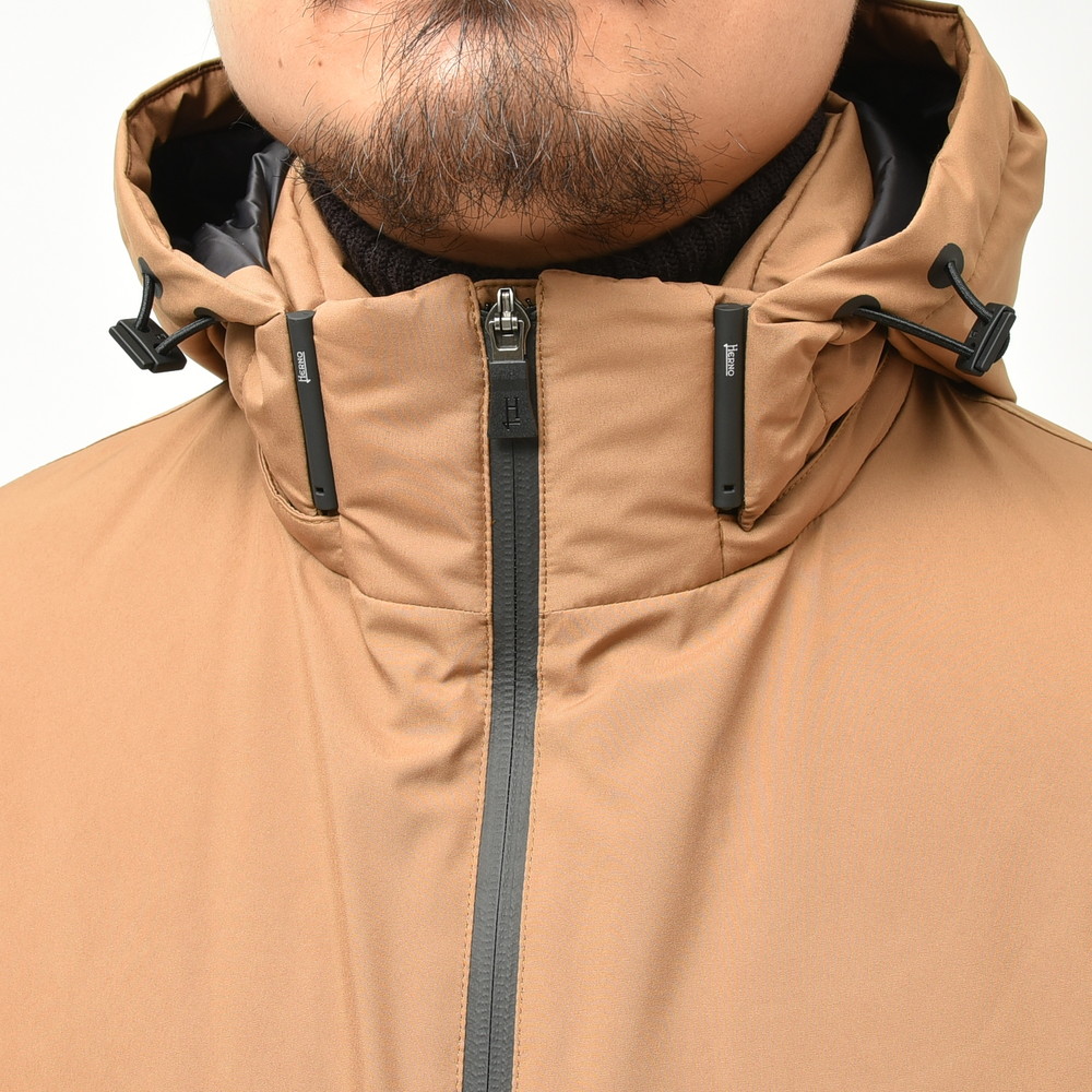軽快なショートレングスでスッキリとしたシルエットにまとめつつ、高い防寒性と防水性を兼ね備えた実力派。フードの着脱は差し込み式のパーツとジップ仕様になっており、外した時のルックスも非常にスッキリ、シャープです。