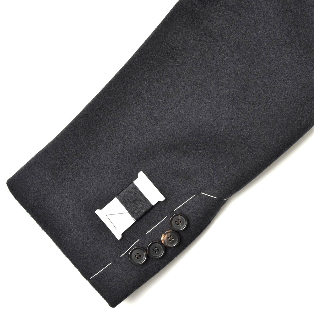 センターベント、ラペル幅11cm、袖アンフィニッシュドです。