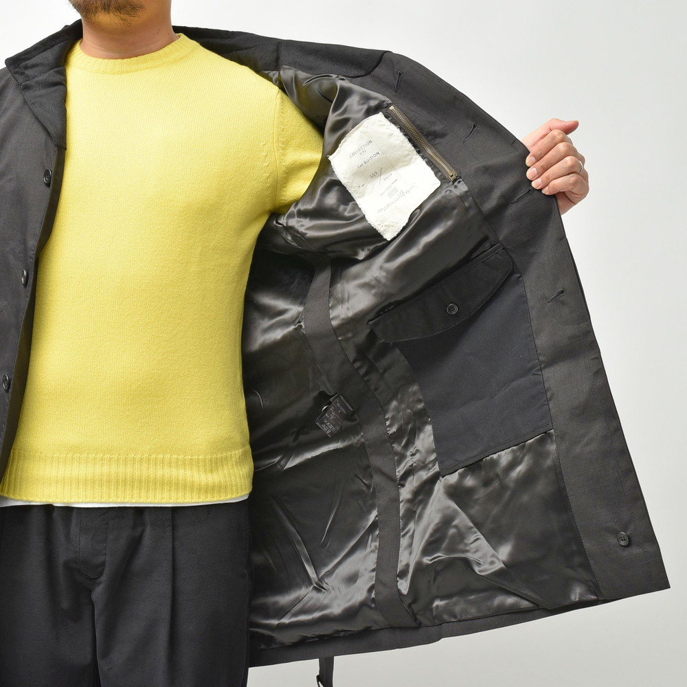 これがスタンドカラーではなくバルカラーだとよりスタンダードな雰囲気に仕上がると思いますが、個人的にはアウターでこういった襟型は珍しい気がしまして非常に惹かれるものがあります。