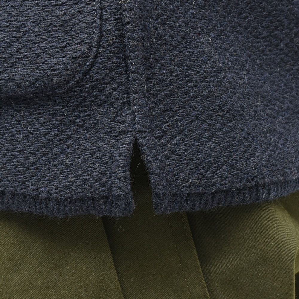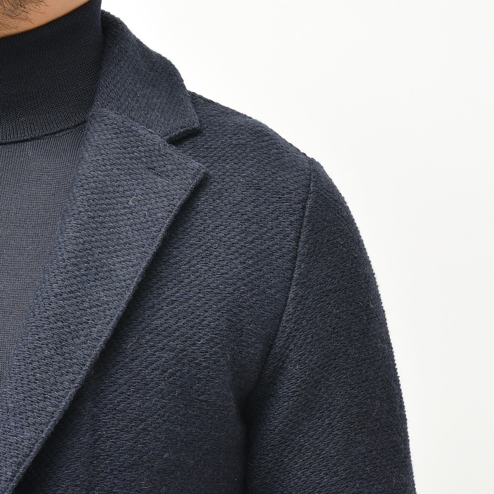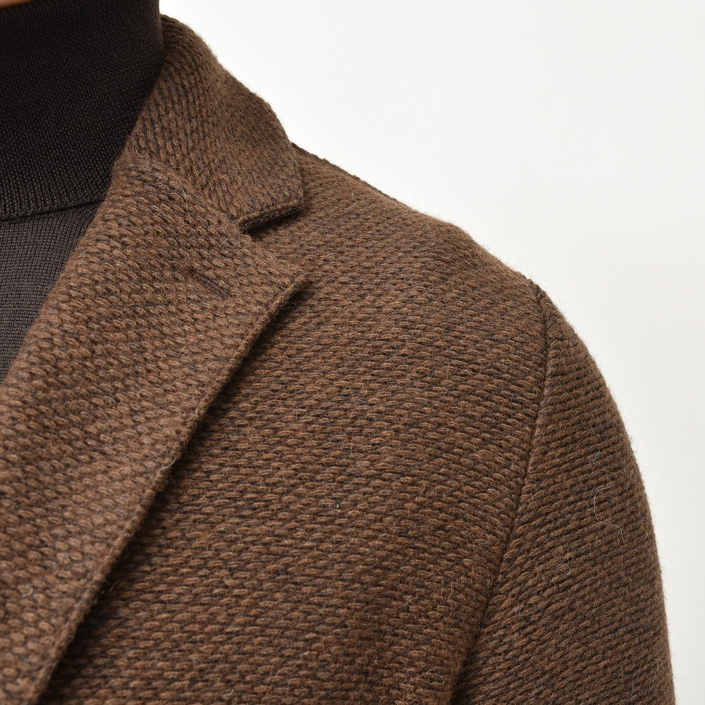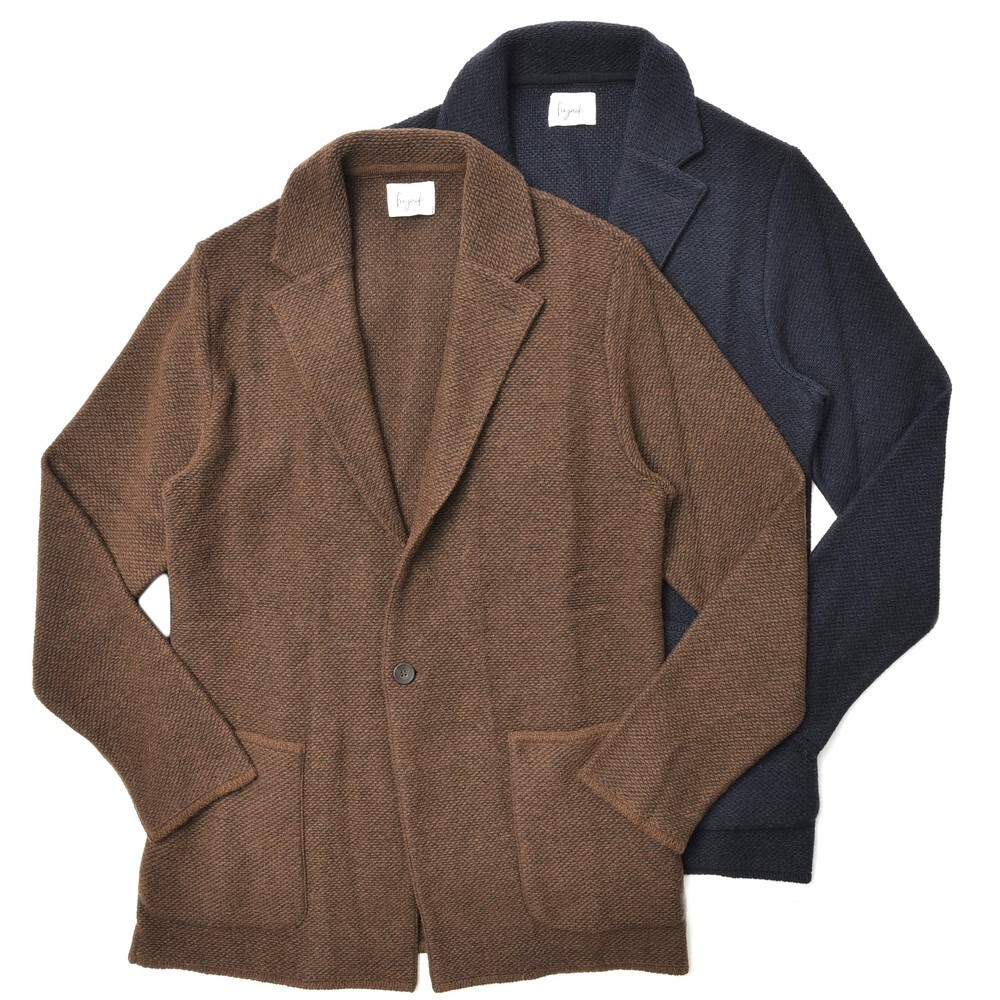 程良くボリュームがあり、上品なウォーム感を漂わせるFinjack(フィンジャック)のアルパカナイロンジャガードニットカバーオールジャケット、大人の余裕とエレガンスを漂わせる素敵な一着です。