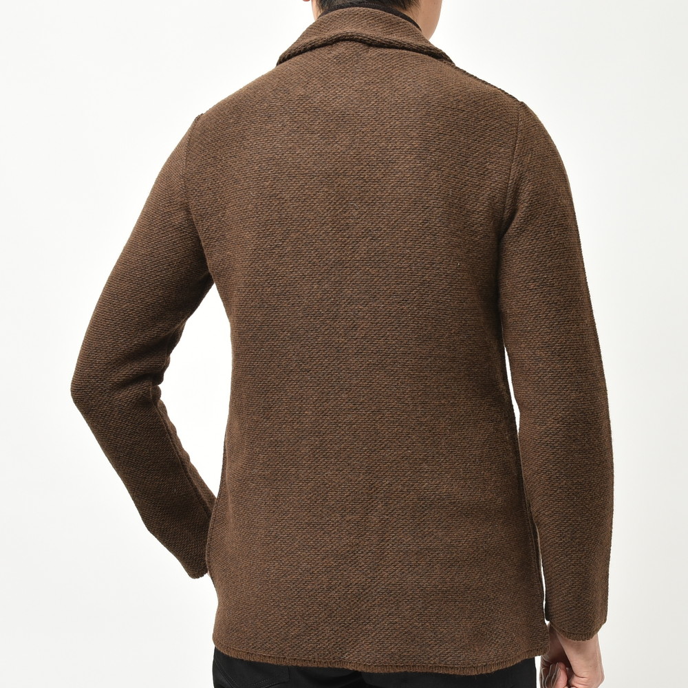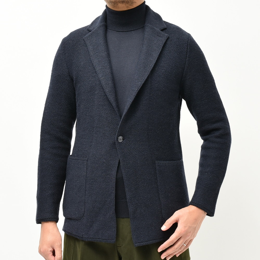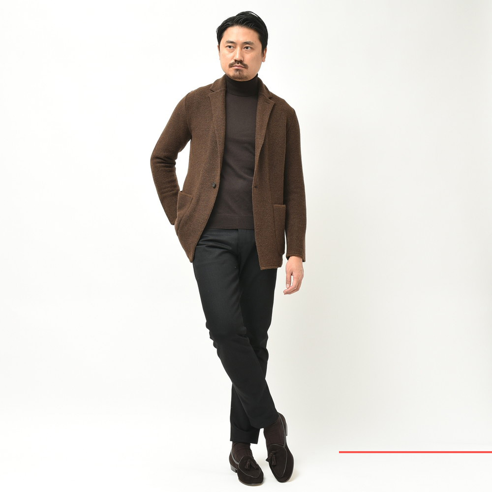 一般的なイタリアブランドのニットジャケットと比べ、いい感じでカジュアルな雰囲気があってデイリーに使いやすい雰囲気の一着でして。カットソーの上にカーディガンや感覚でサラッと羽織りたいイメージでしょうか。