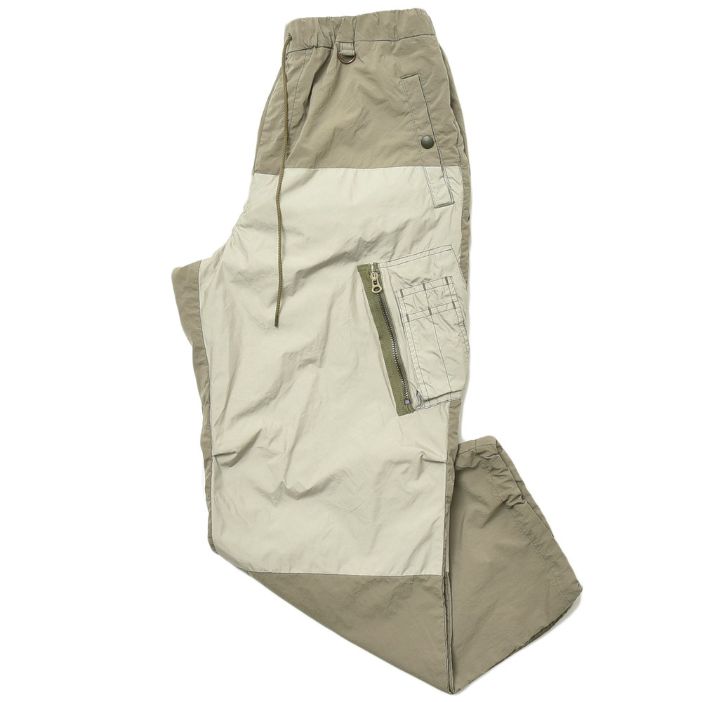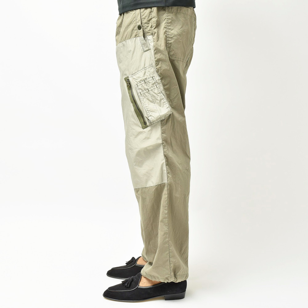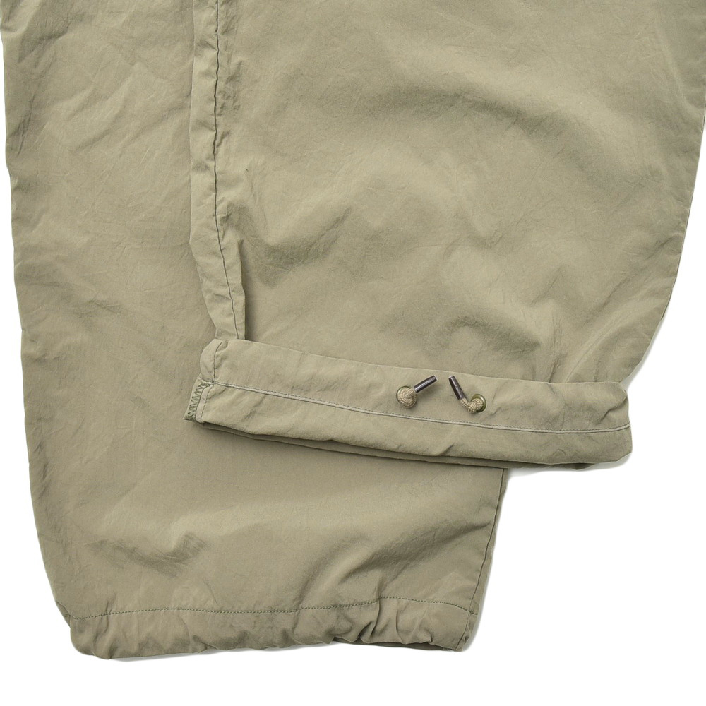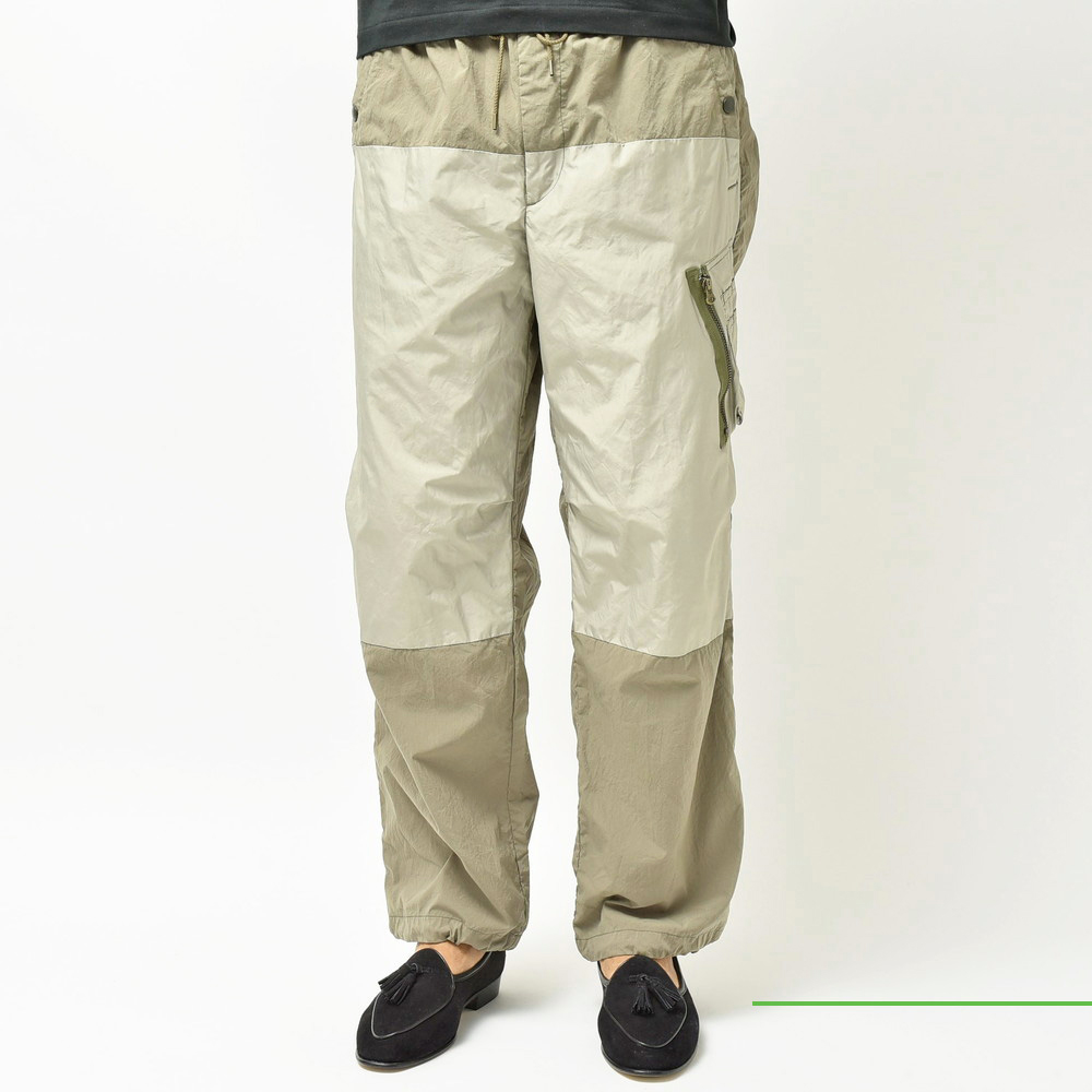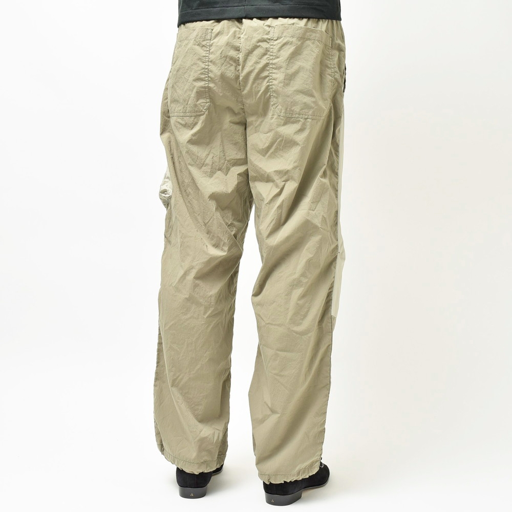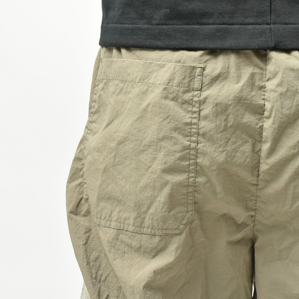 軽さのあるポリエステル素材で提案されたミリタリーパンツ、モチーフとしてはパラシュートパンツがもとになっているかなという感じがしますが、mando(マンド)らしくグッとモダンで洗練されたムードを感じさせる一本です。