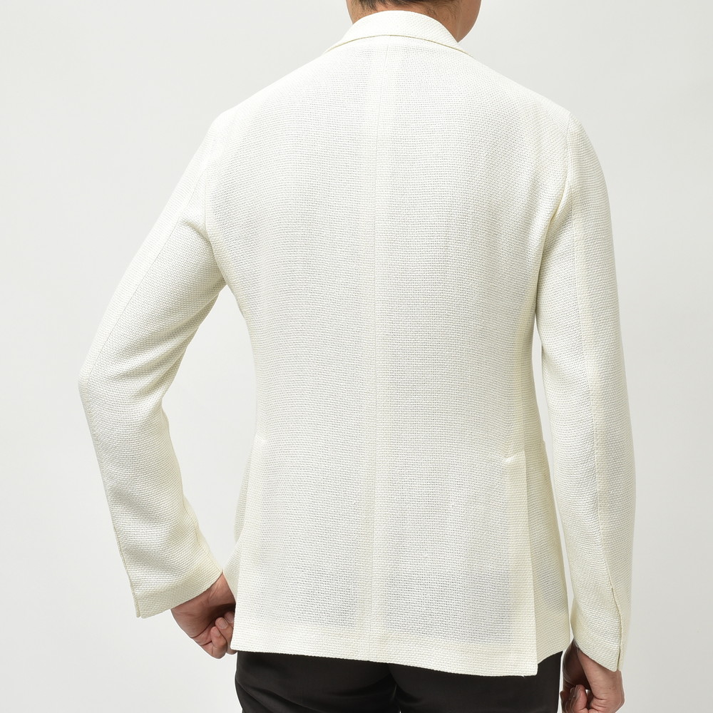 通年で着用出来る生地も良いのですが、やはり季節感というのも大事にしたい部分ですよね。そういった意味合いでもシルク×リネン且つメッシュというのは間違いない選択肢なのではないでしょうか。