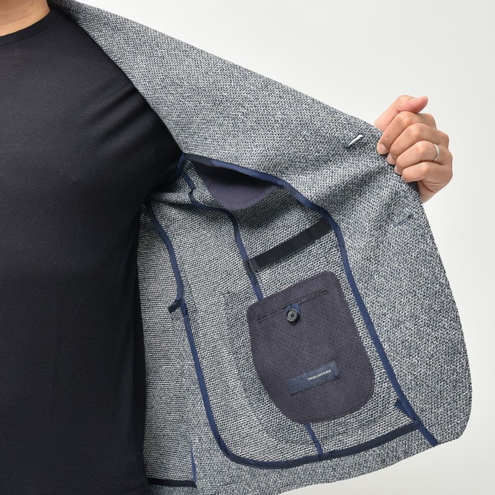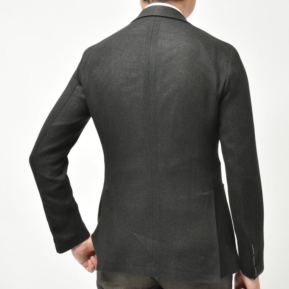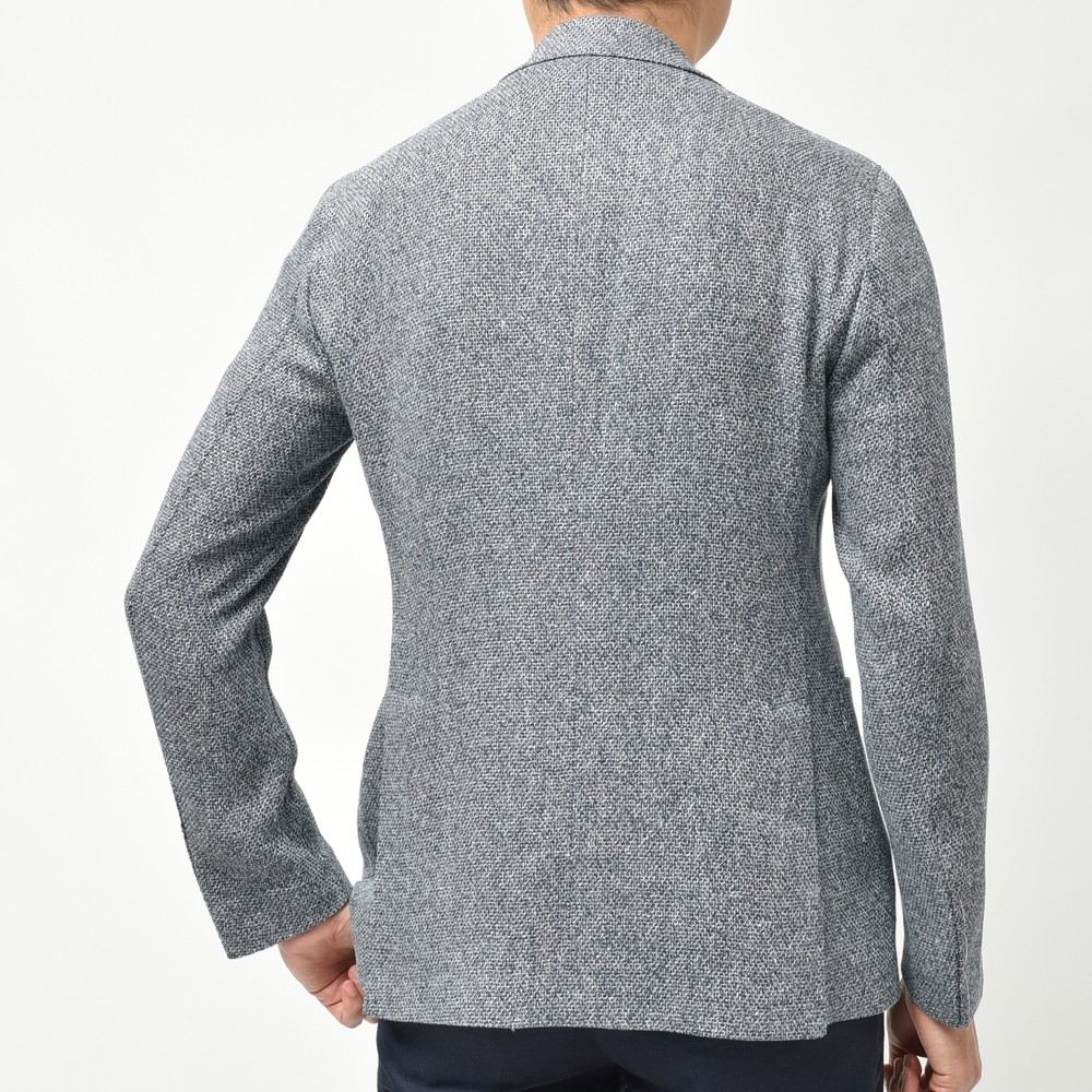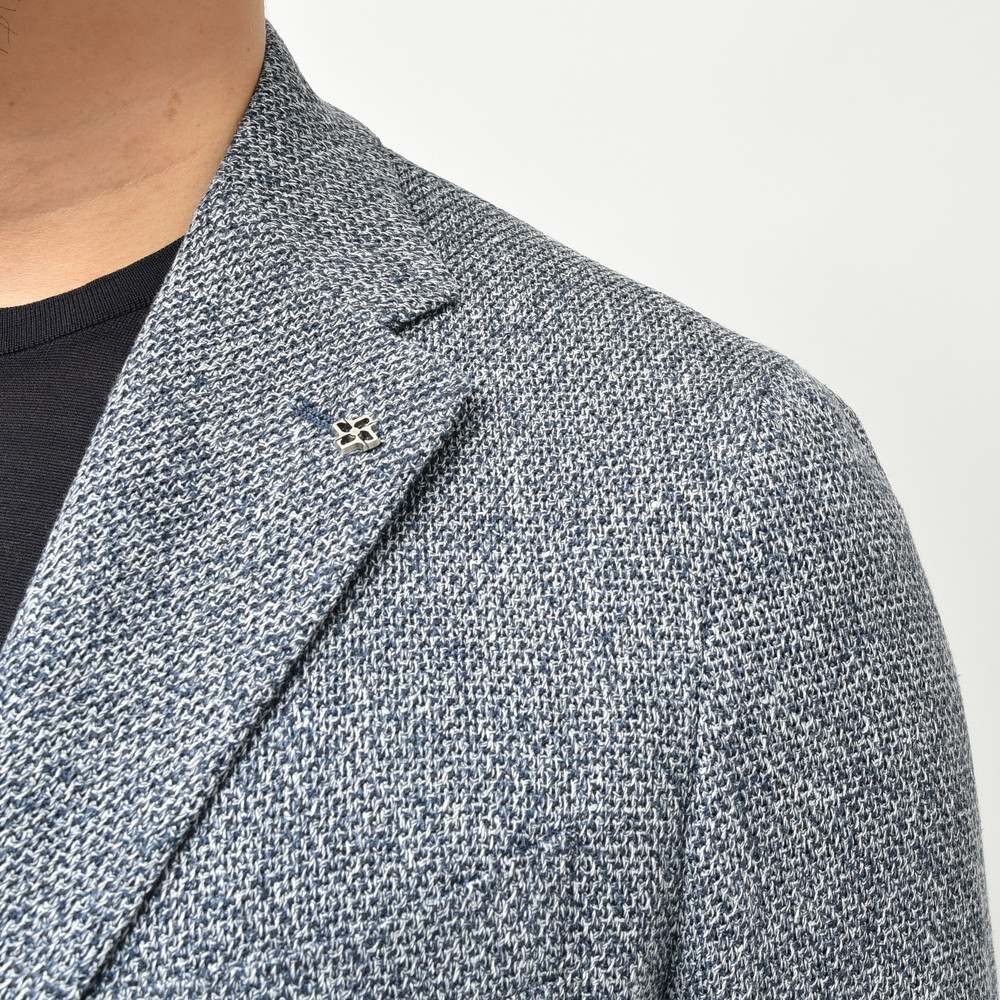 ベタな単色を用いず、メランジ調の見え方になるように糸の色に変化をつけているところもポイントでして、羽織った時の華やかさと奥深さは春夏シーズンのジャケットとして群を抜いているように感じます。