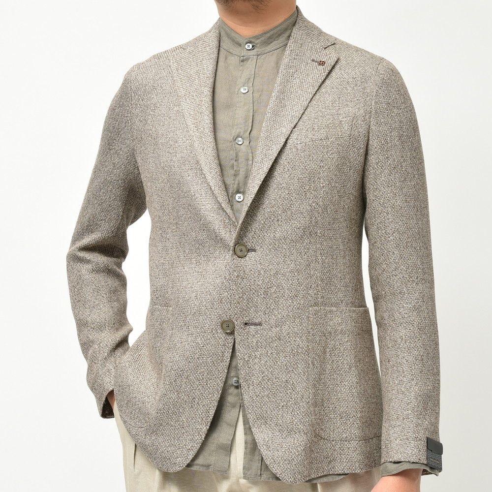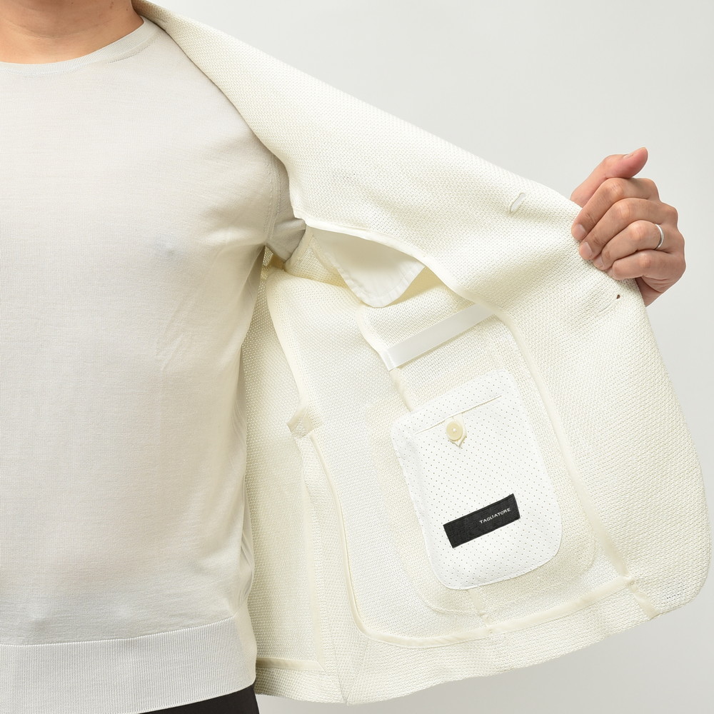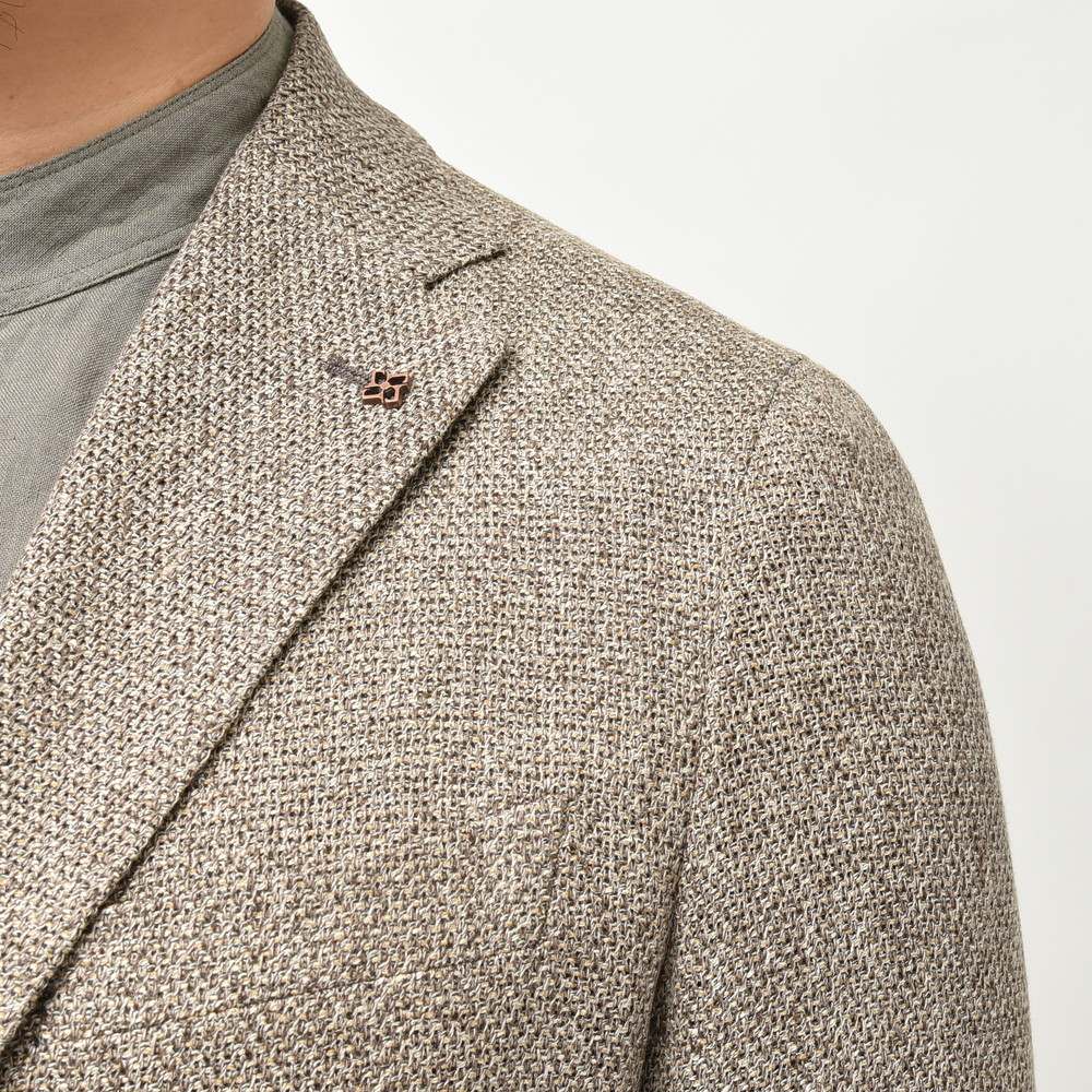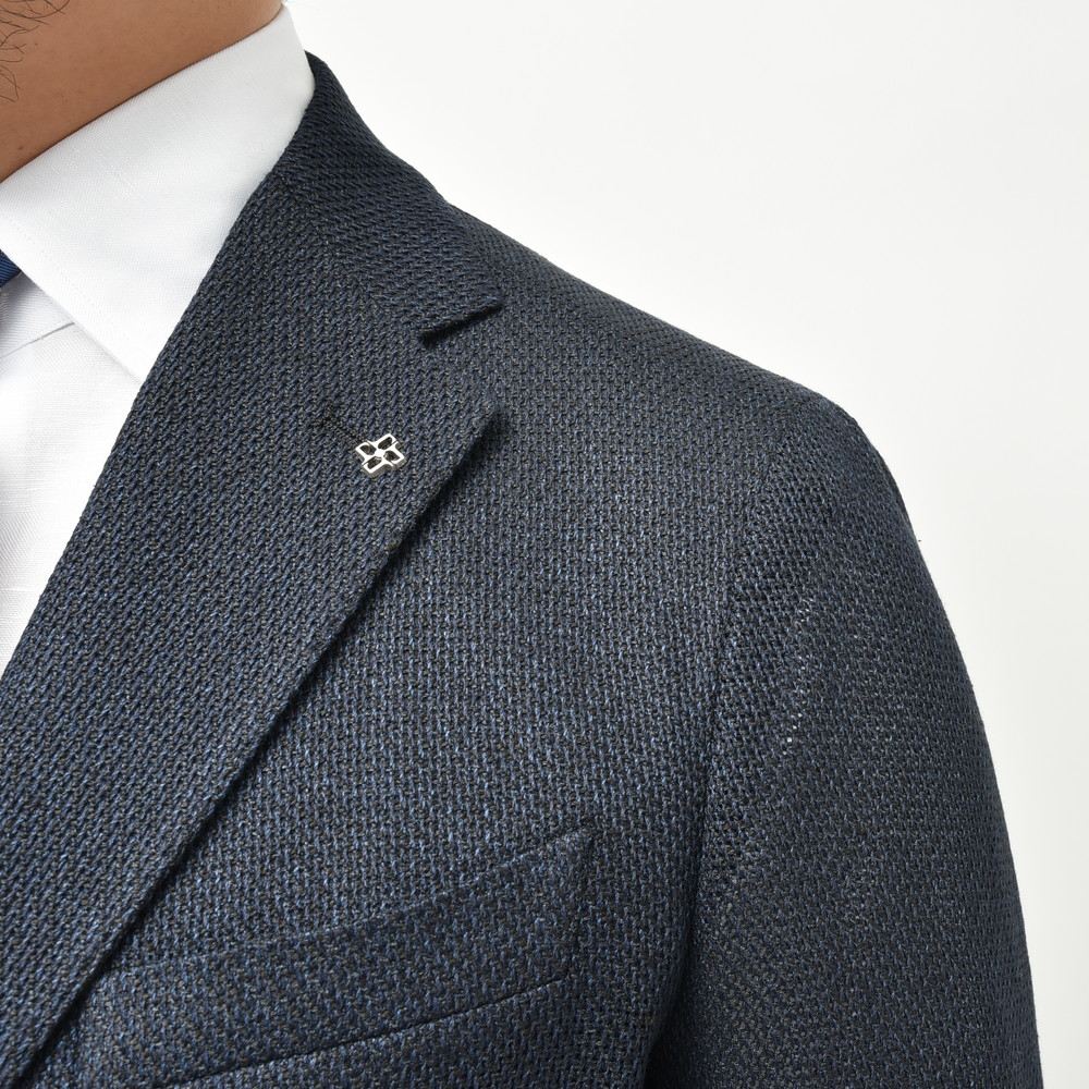 TAGLIATORE(タリアトーレ)のアンコン仕立てのスーパーライトウェイトジャケット“DAKARダカール”、その中でもナチュラルな素材を用いつつ通気性を兼ね備え、イタリアらしい色気を感じさせるのがこちらのシルクリネンメッシュファブリックです。