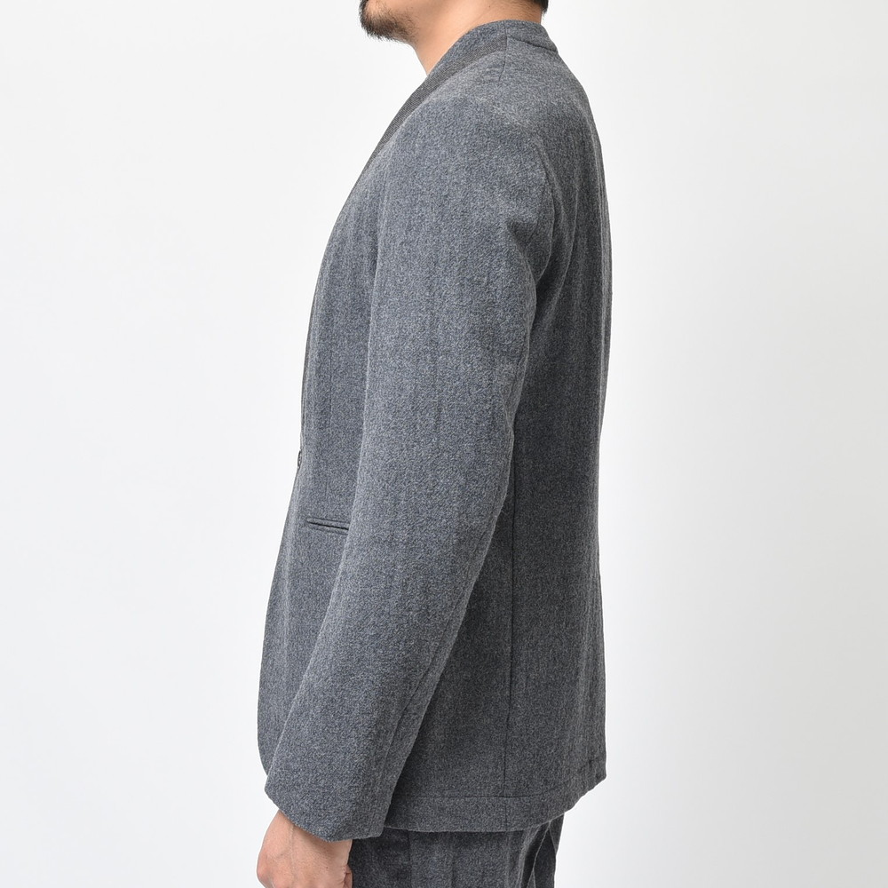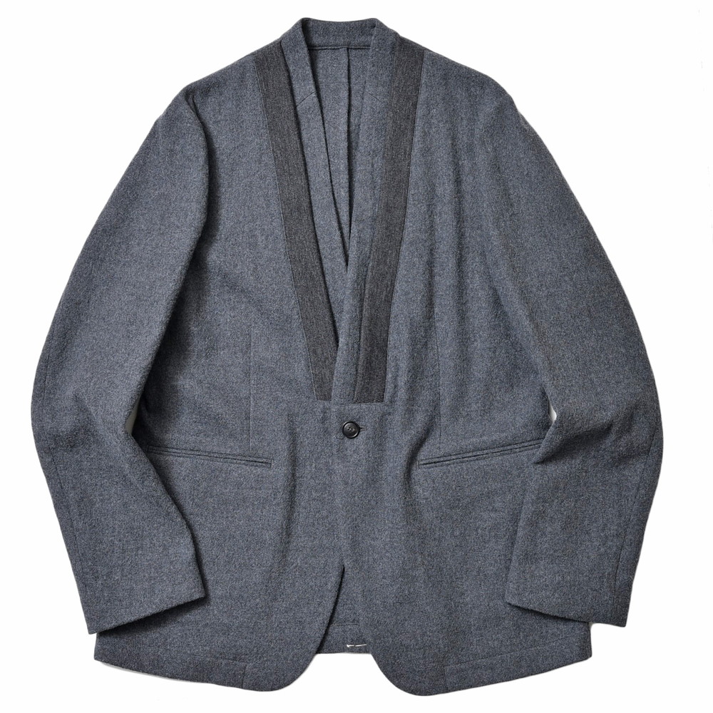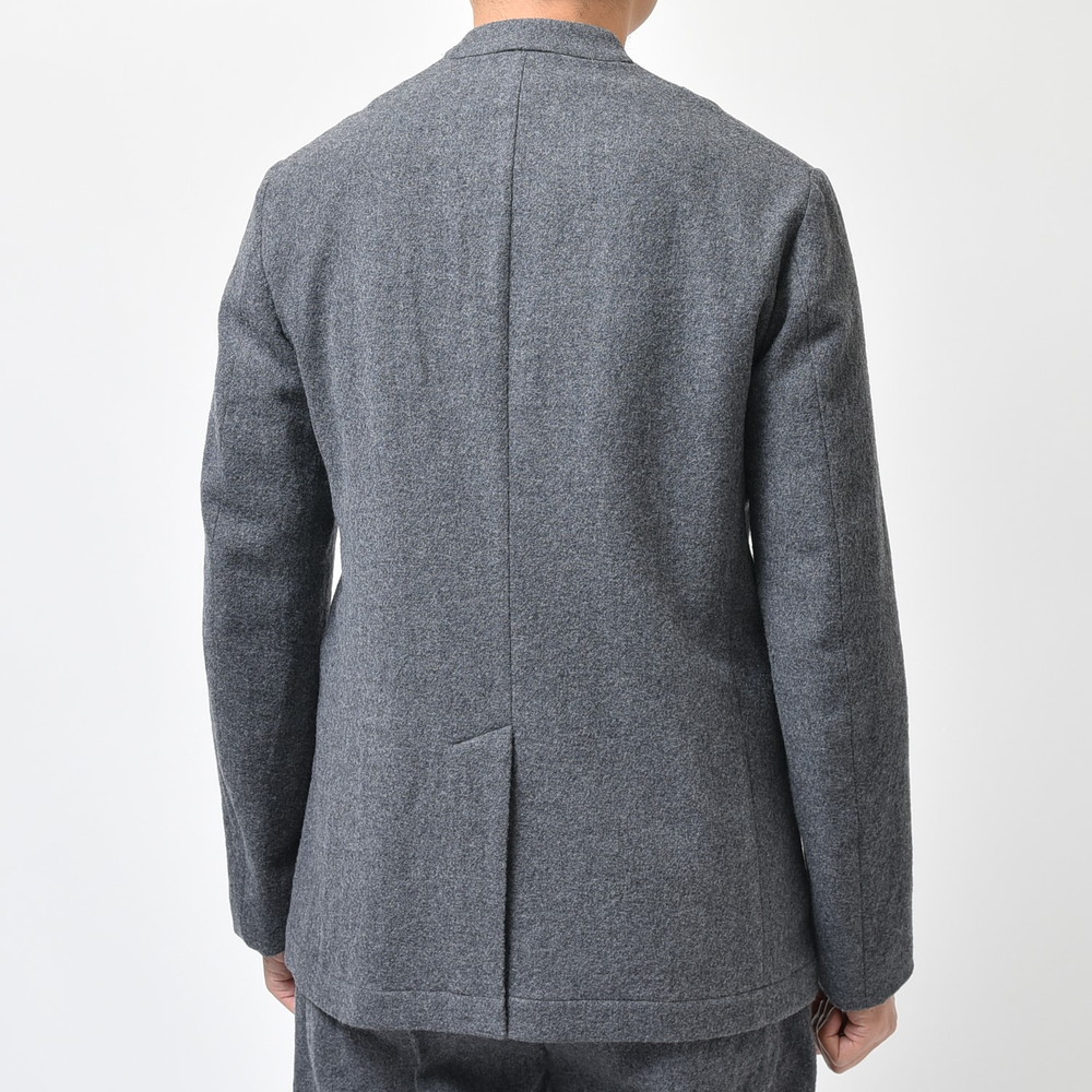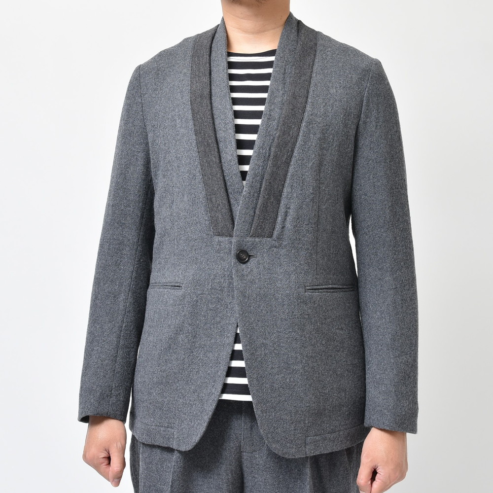 シンプルなノーカラータイプのものとは一味違っているのがこのブランドらしいと言いますか、リブのようなデティールをプラスすることでよりデザイン性を高めています。