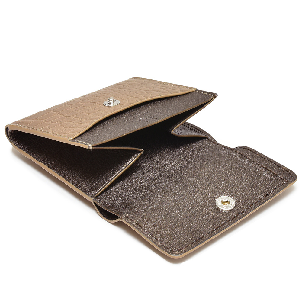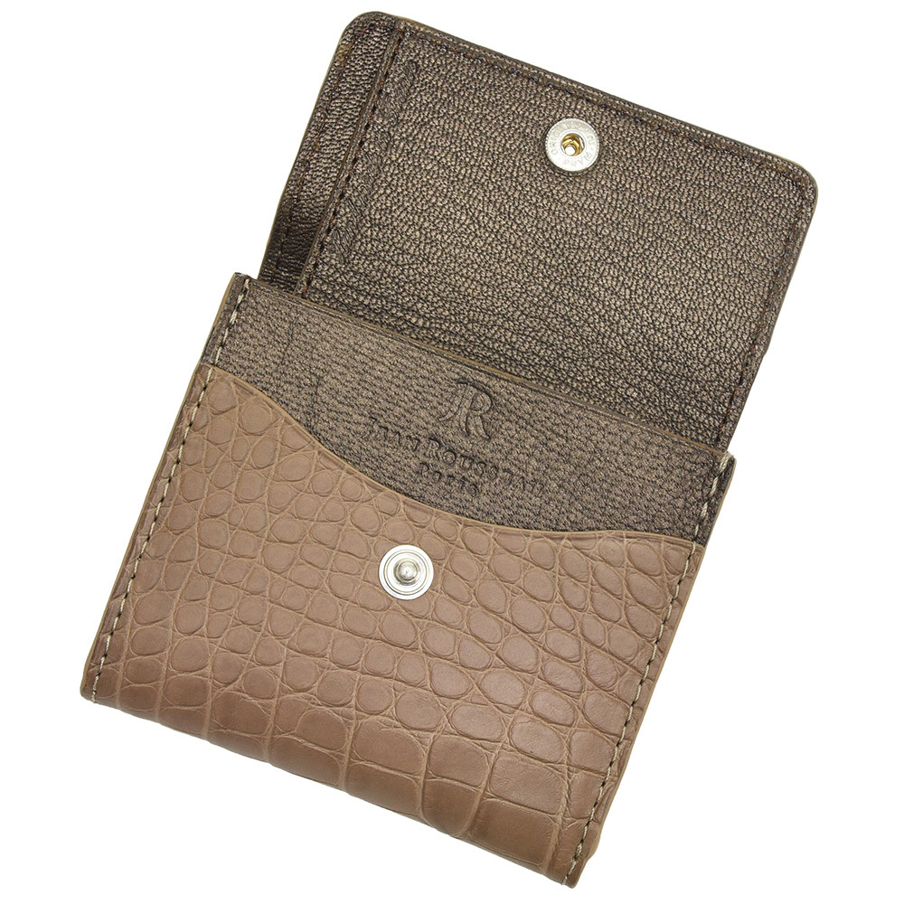 艶を抑えたマットな質感のアリゲーターを使用したこちらのコインケースは、実はサイドに紙幣を折り畳んで収納できる仕様になっており、なんとこのサイズで財布としての機能を十分に果たしてくれるんです。