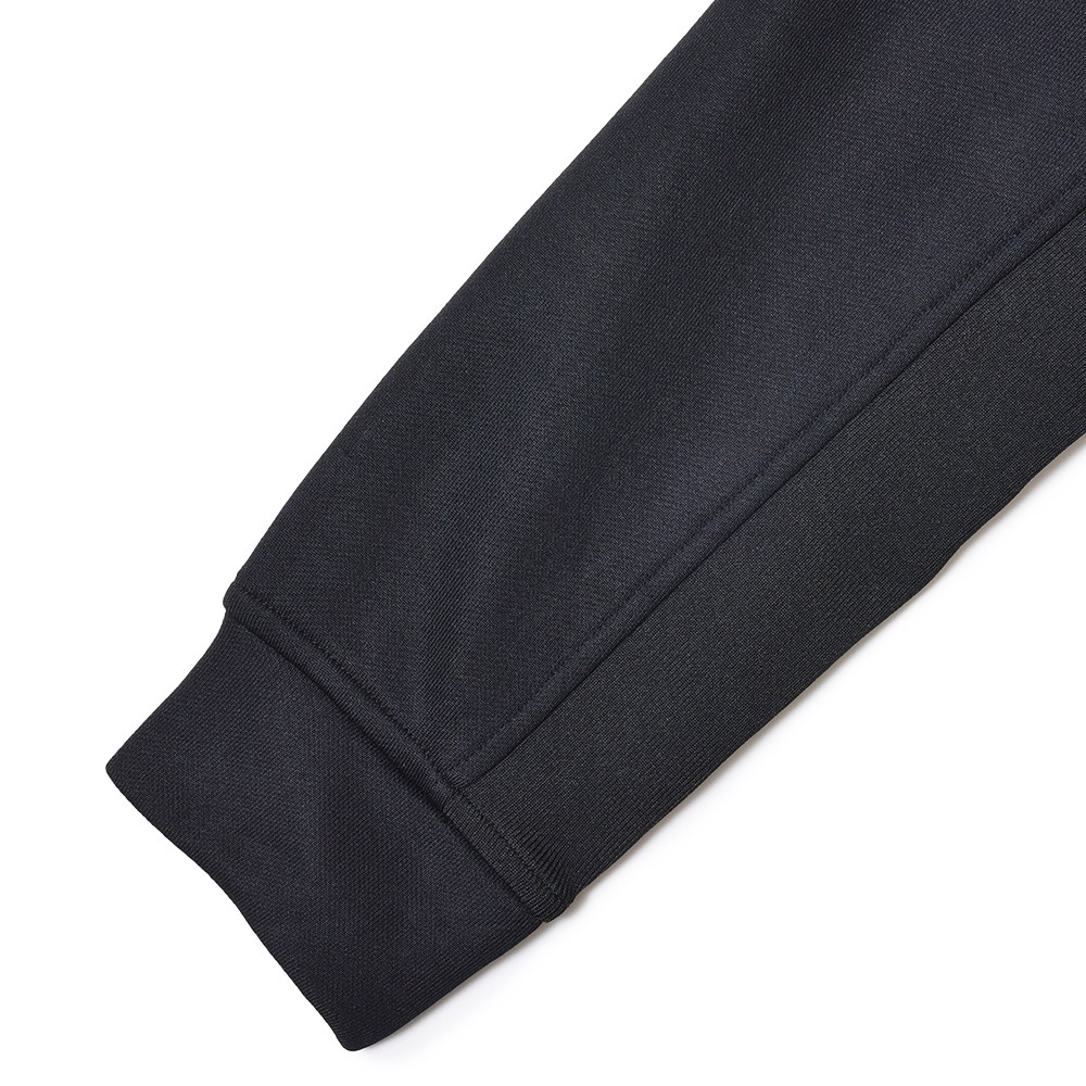 スポーツアイテムというカテゴリーを越え、様々なシーンで着られるものが求められる今なので、一定の機能性を備えながら高級感を備え、美しいシルエットを描くことが必須。こちらのトラックジャージはリサイクルポリエステルをミックスすることで適度に張りがあり、生地がたるみ過ぎず高いキックバック性能があるのでシルエットが崩れにくくなっています。