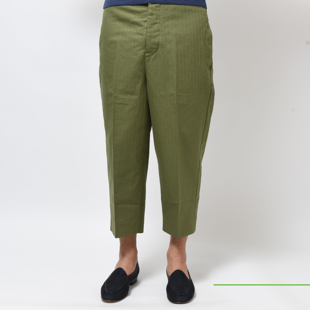 コットンリネンヘリンボーンテーパードクロップドパンツ BRUCE 221P009