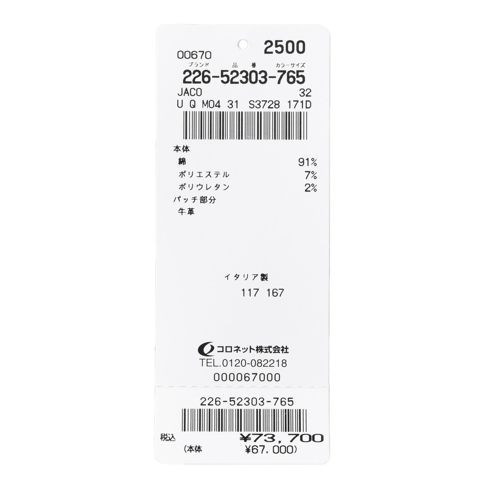 ステッチは定番の組み合わせですがパッチに関してはハラコではなくブラックのレザーを使うというやや珍しい構成になっています。実はこういった細かな仕様などもシーズンやモデルによって違いがあるというのもJACOB COHEN(ヤコブコーエン)らしい所なんです。