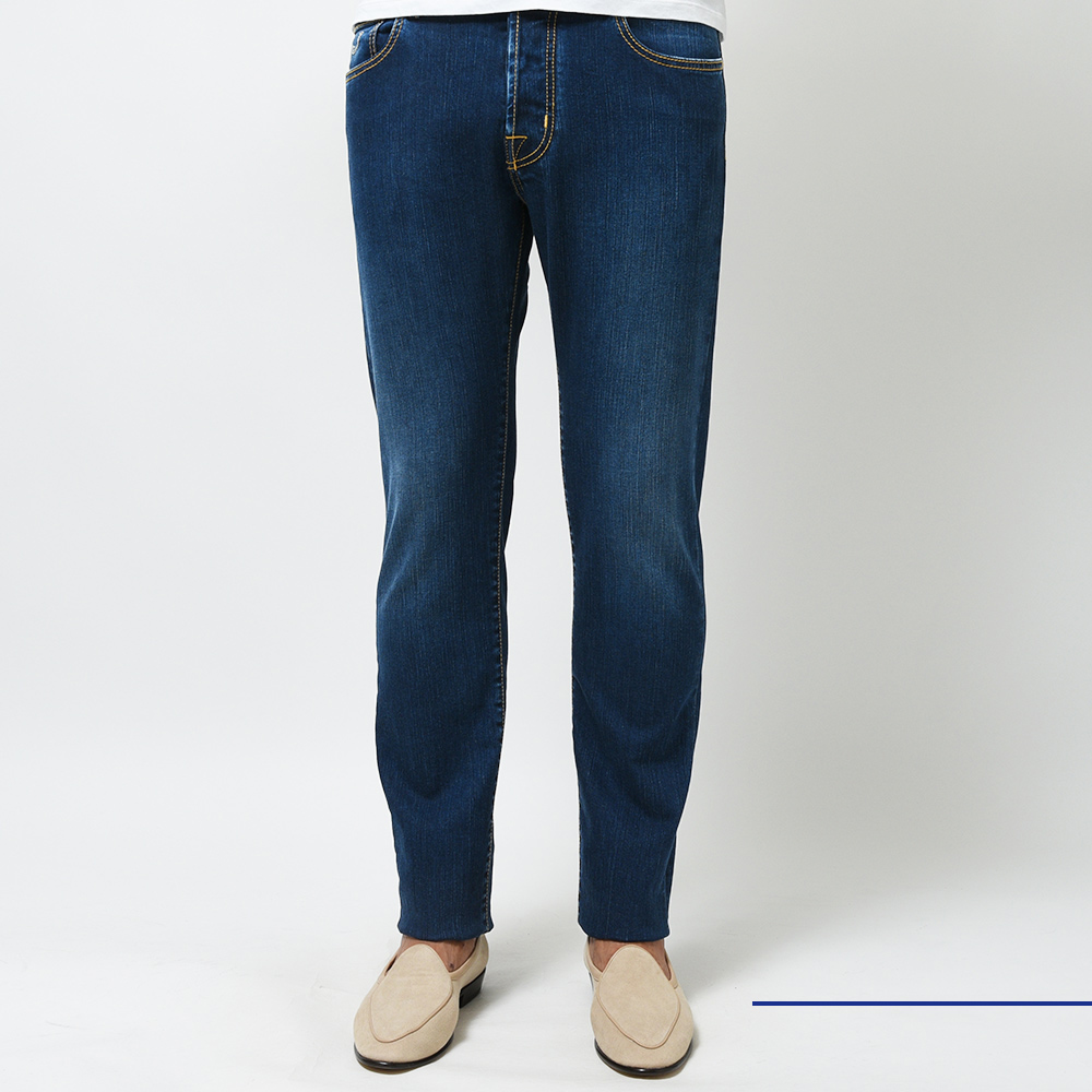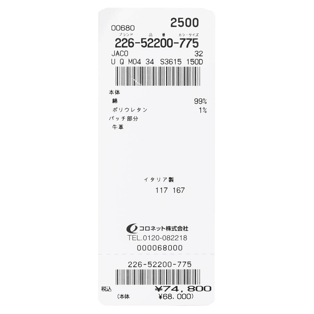 縫製にはホワイトステッチ1割、定番オレンジステッチを9割採用する事でいいアクセントを生み出しており、通常であればやや重いイメージに仕上がりそうなところ、前述したディティールとも相まってJACOBらしい遊び心を感じさせる一本に仕上がっています。