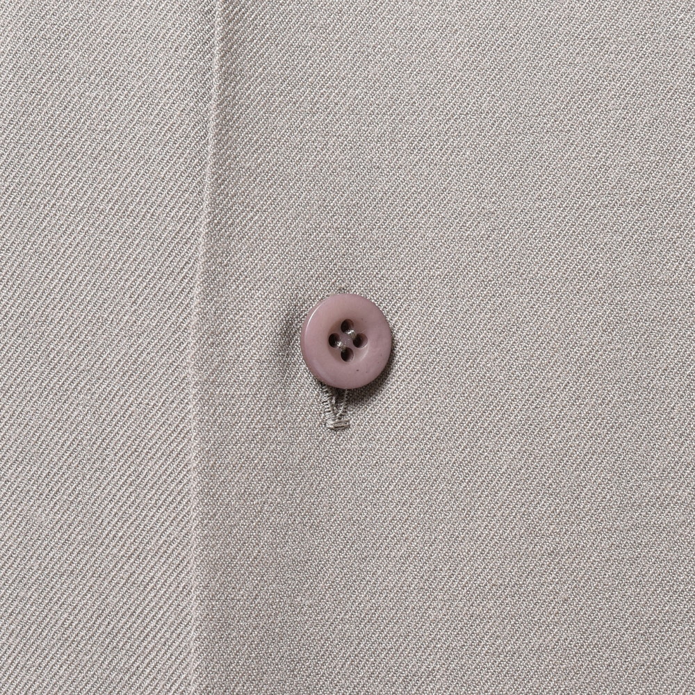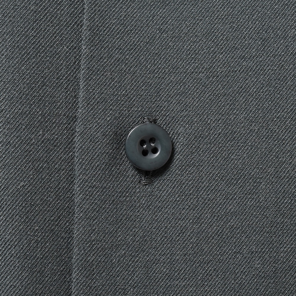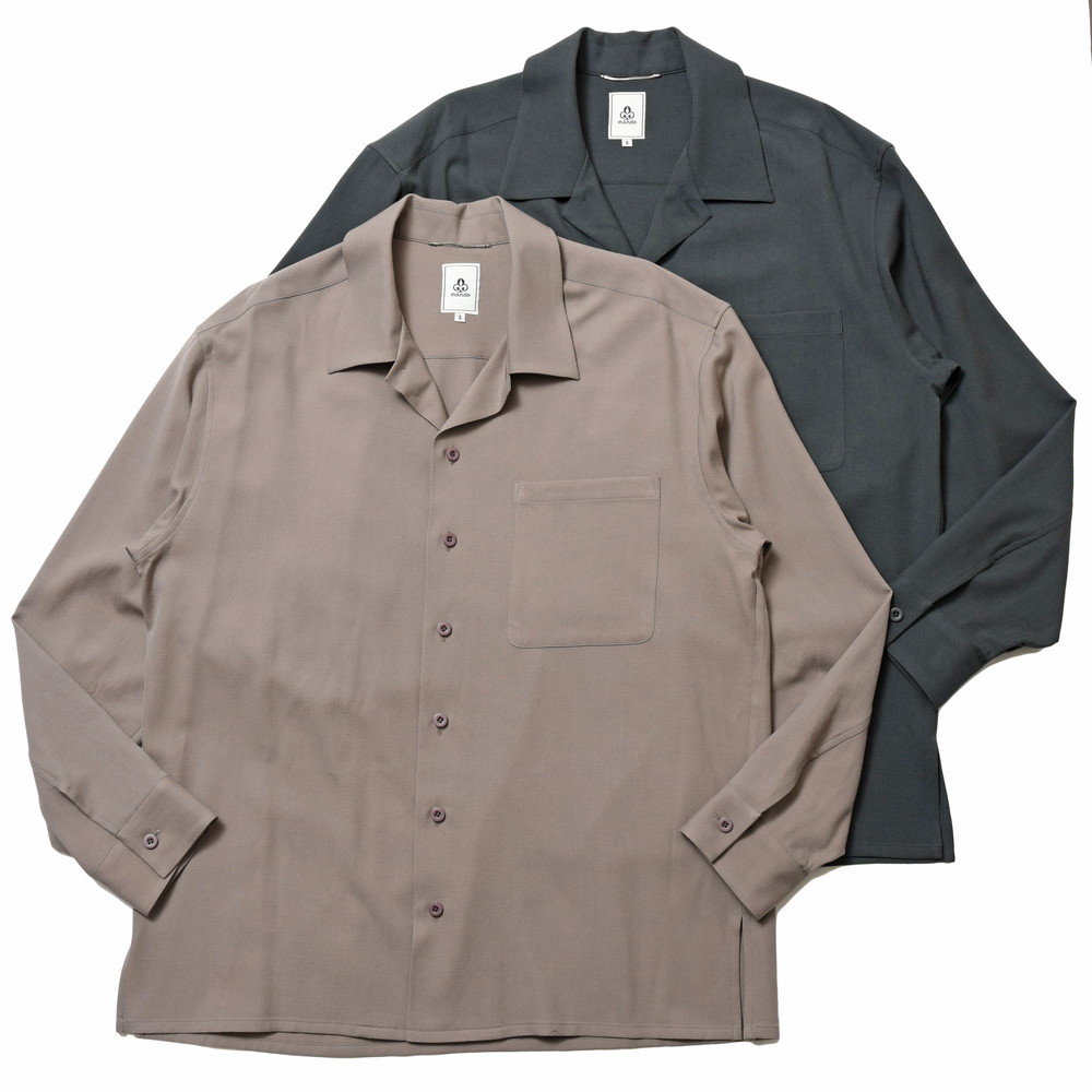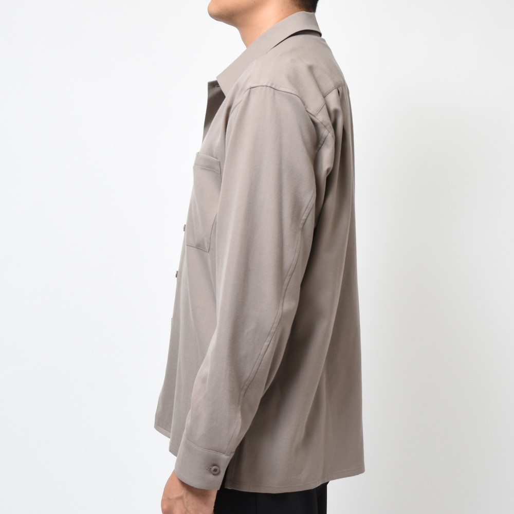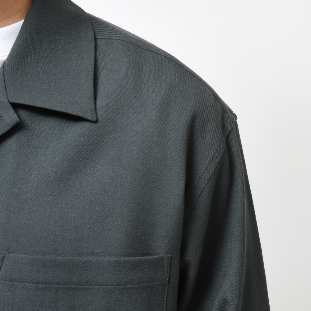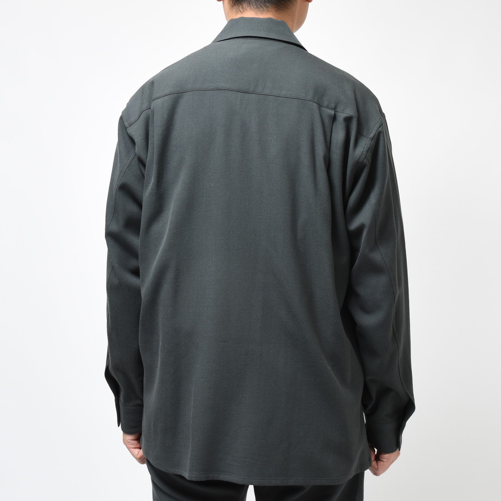 これまでは化繊での提案が多かったシャツですが、今回はウールのサージ生地で仕立ててある為、何処かクラシカルな要素も感じさせつつ現代的に着ることが出来る、そんな一着に仕上がっています。