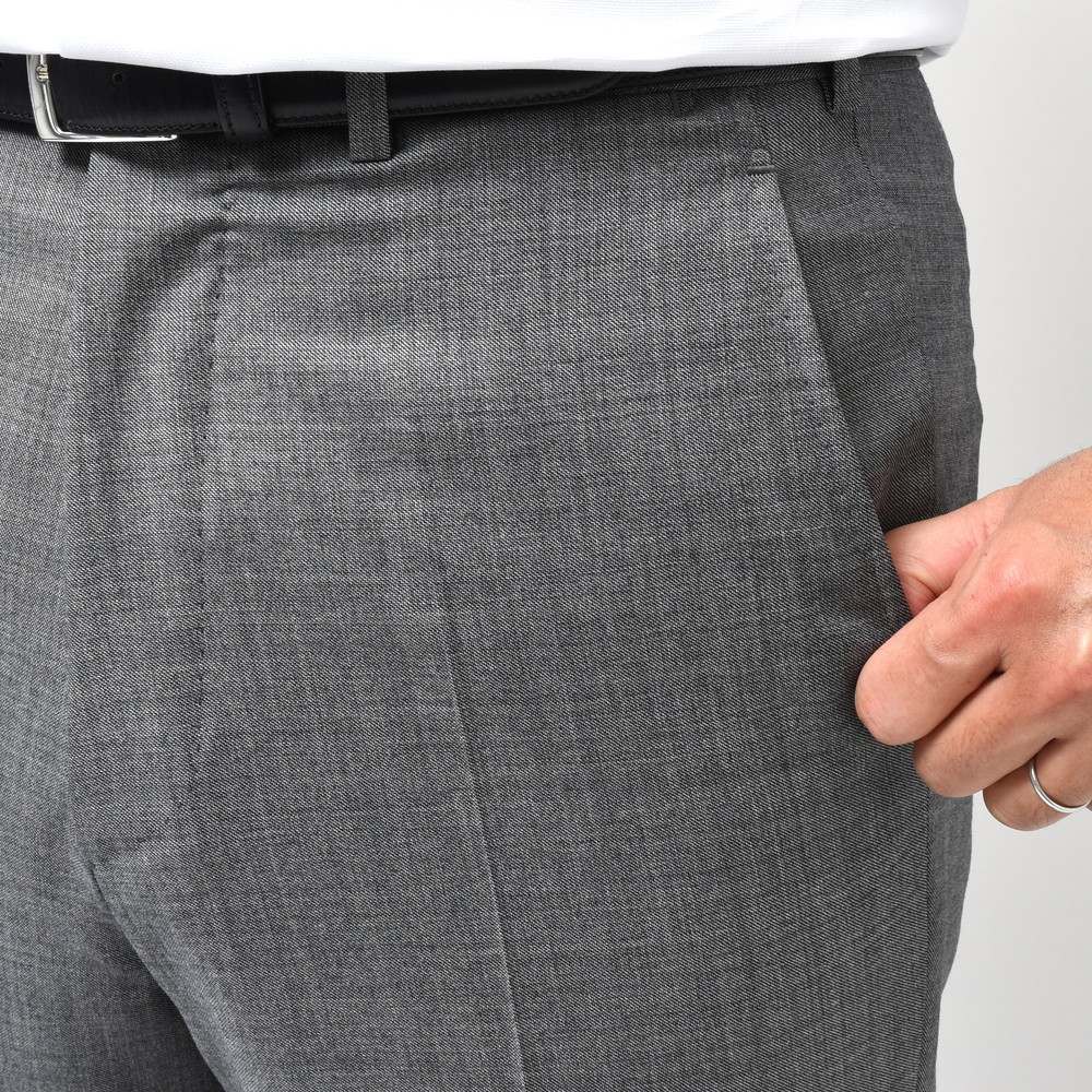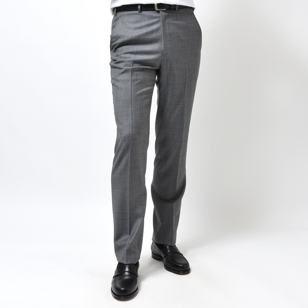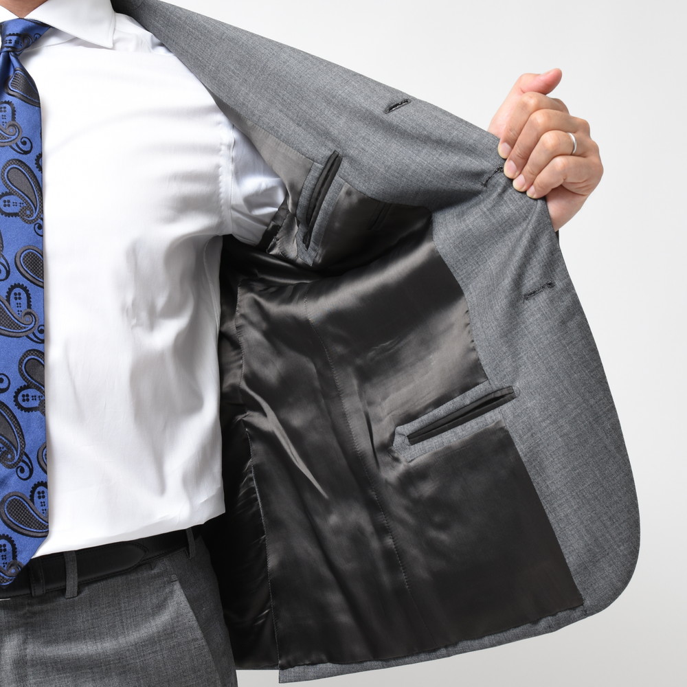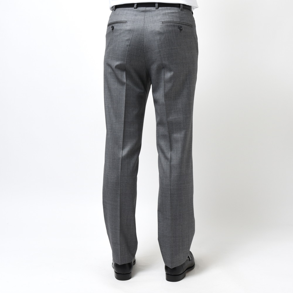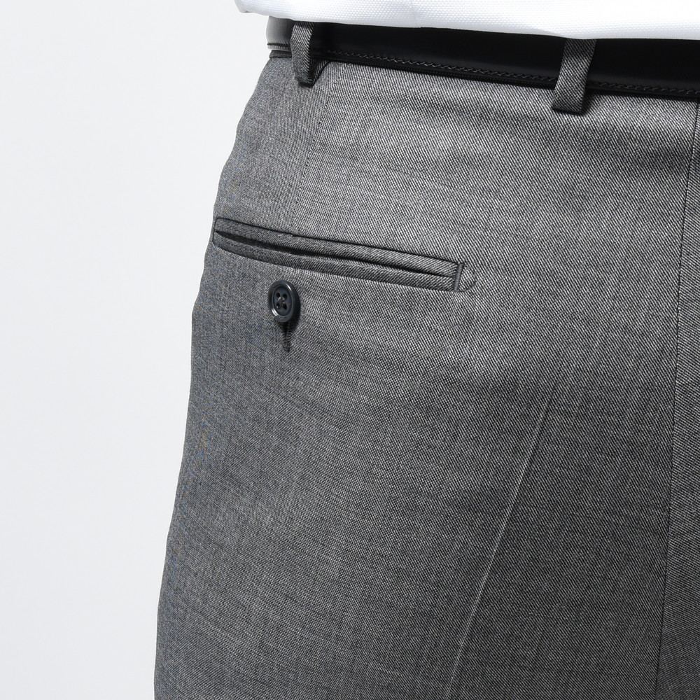 シャークスキンと聞くとそもそも鮫肌タッチなので良い意味でザラリとして張りがあるイメージですが、こちらは組織も非常に細かく、ツルリ、さらりとした滑らか&エレガントな風合い。艶感も上品で、エグゼクティブのスーツに相応しい見栄えになっています。