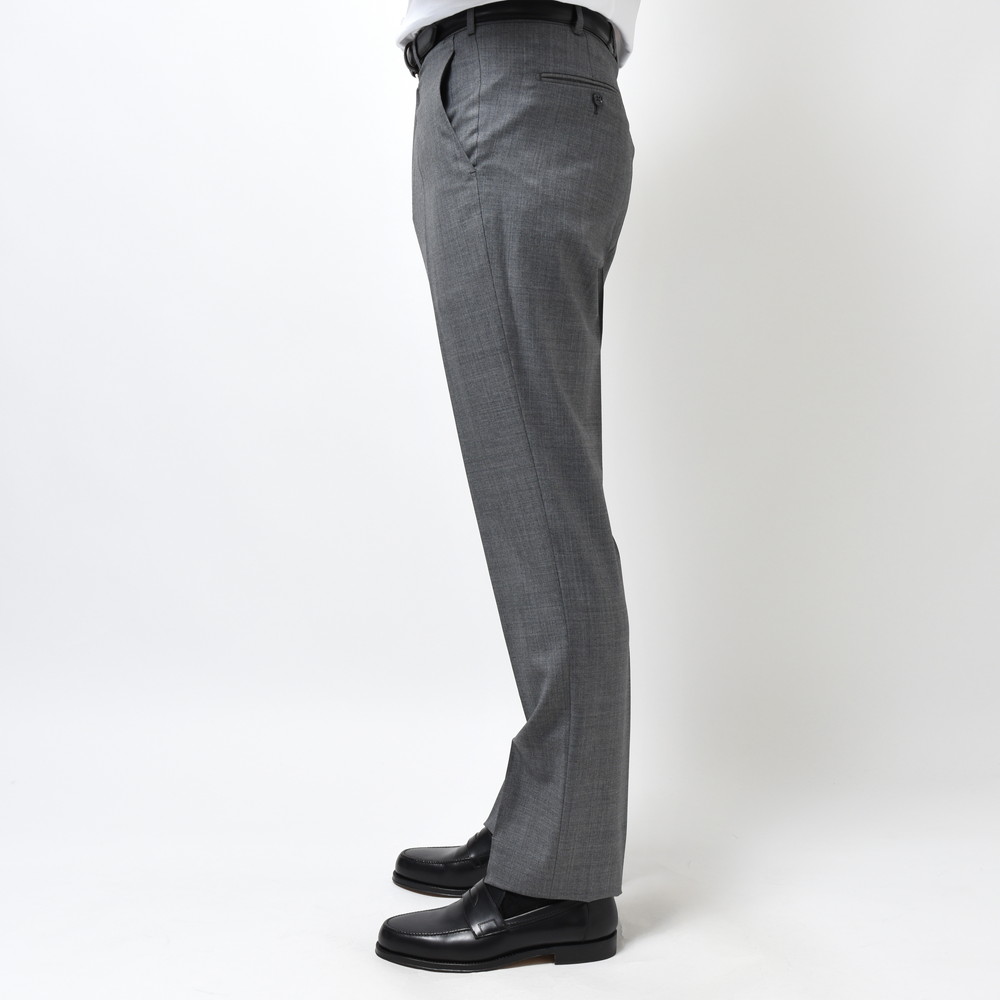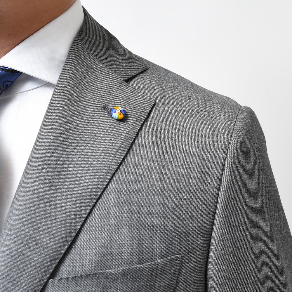 秋冬素材からのチョイスですが、起毛感の少ないシャークススキンはオールマイティーに季節を選ばず着用でき、地味すぎず派手すぎず良い塩梅でクラシックスタイルを楽しんでいただける一着です。