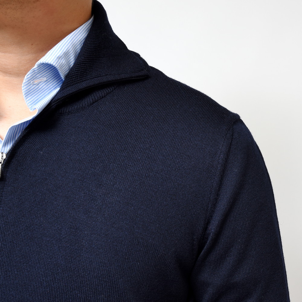 滑らかな触り心地のメリノウールのハーフジップニット、Gransasso製のコチラはgujiでは新しいモデルですね。