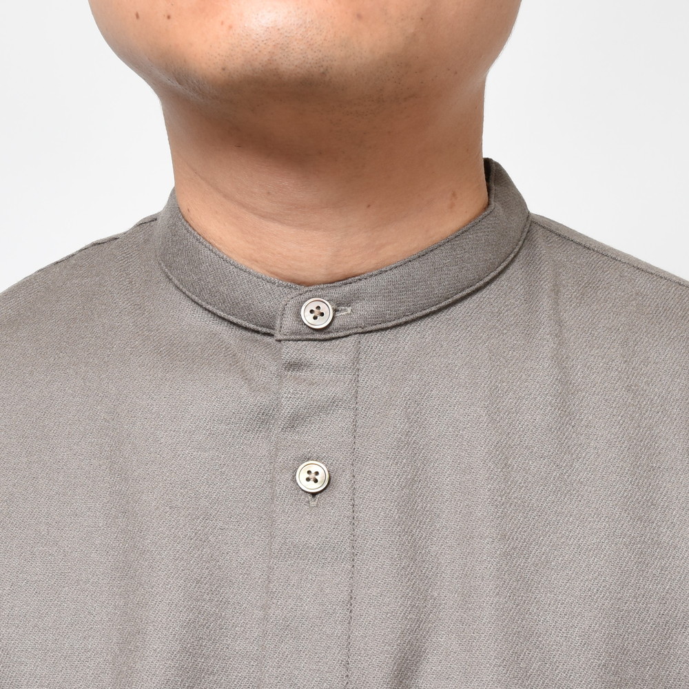トレンド的にはくすみカラーという感じでしょうか。羽織るだけで柔和な雰囲気を形成できるタイプのシャツかと思います。