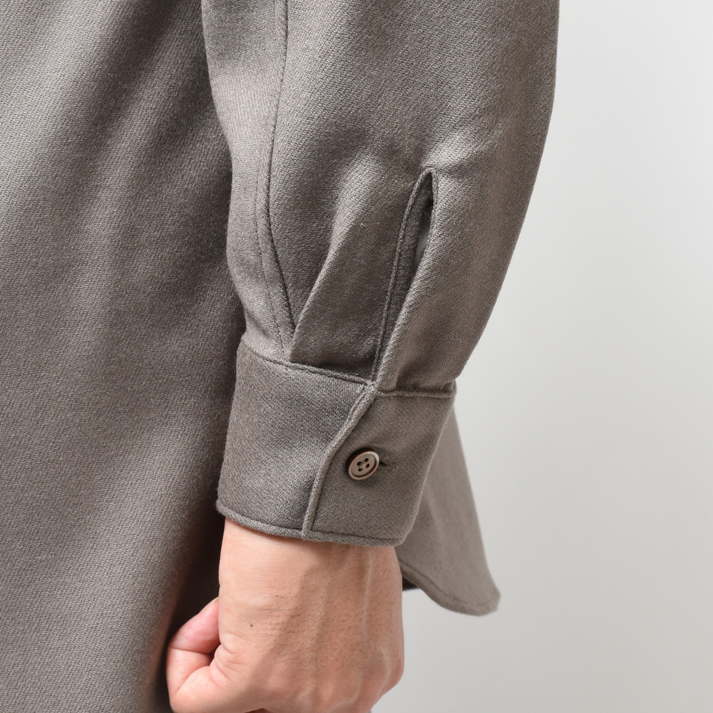 形は程良くリラックスしたタイプになっていますが、オーバーサイズ過ぎる感じではないというのもポイント。柔らかな素材感とシルエットが組み合わさる事で非常に綺麗なドレープを生み出しています。