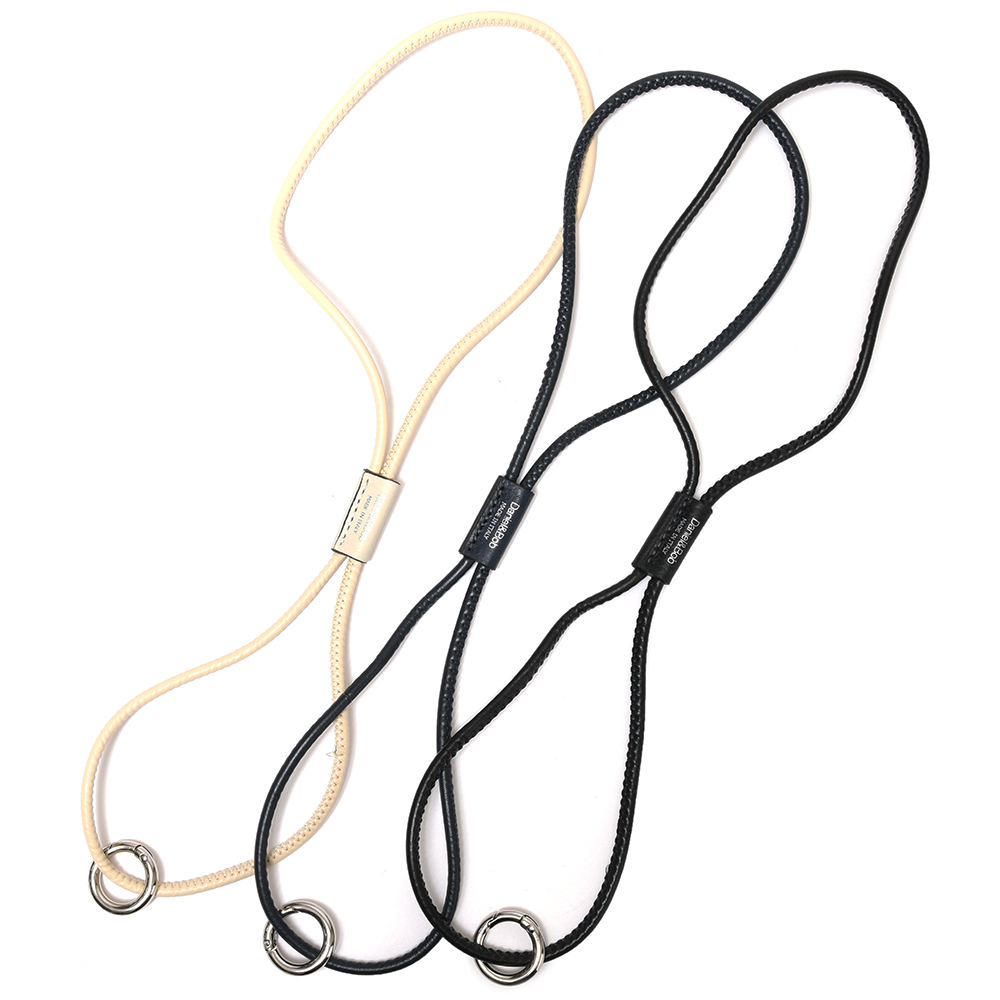 こちらはそんなネックアクセサリーをセットする為のネックストラップ。先端には気持ち大きめの金具がセットされており、自由に組み合わせて使って頂くために主張のないミニマルデザインを採用しています。