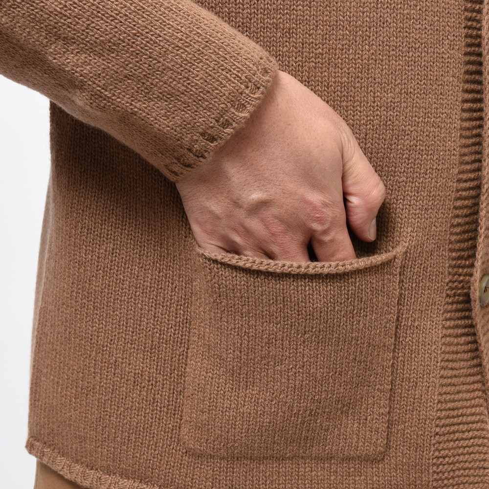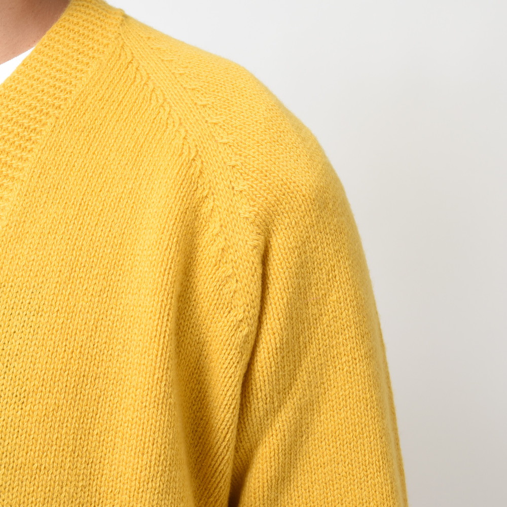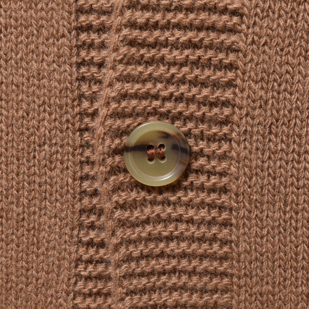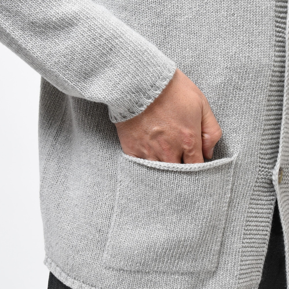 裾部分には絞りを入れずストンと落ちるようにしているのがポイント、これによりスマートなシルエットであっても窮屈感が出ずスッキリと着ていただける形に。片意地張らずに着ることが出来るのがカーディガンの良い所、サッと羽織れる一着はデイリーに活躍してくれるはずです。