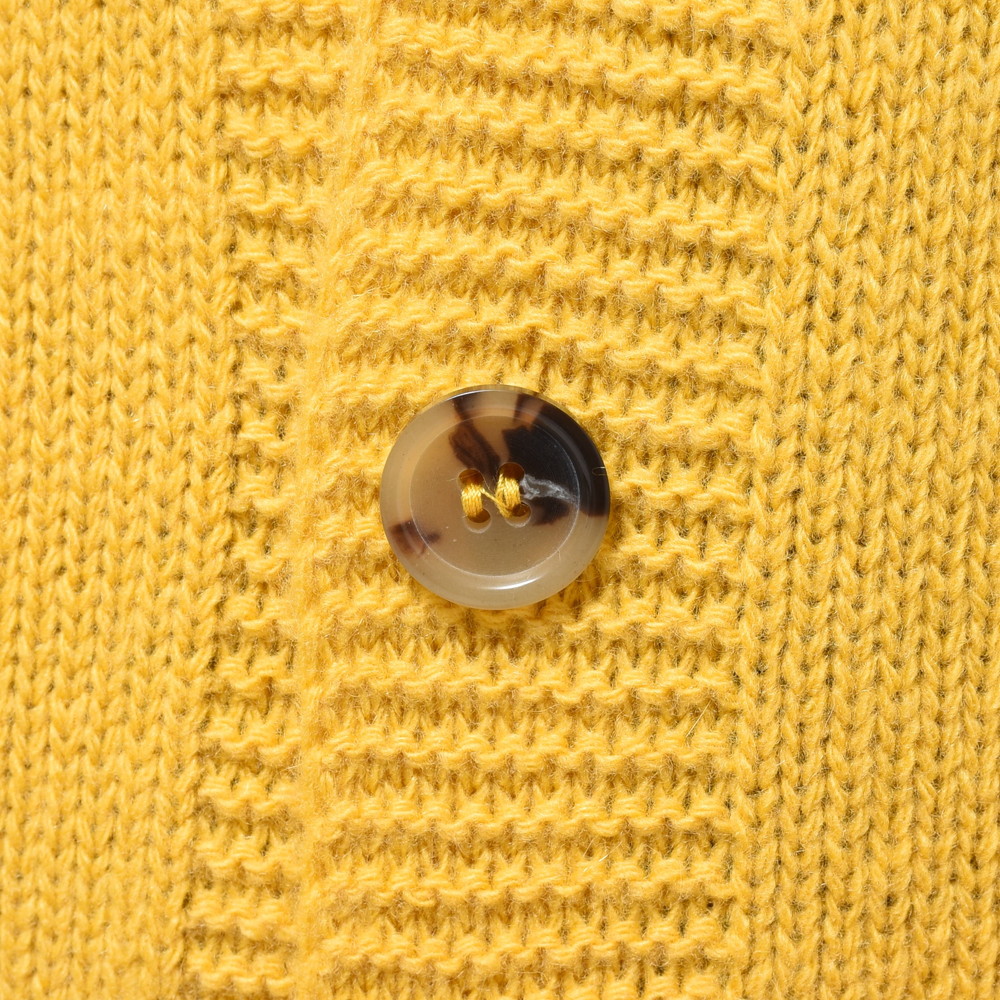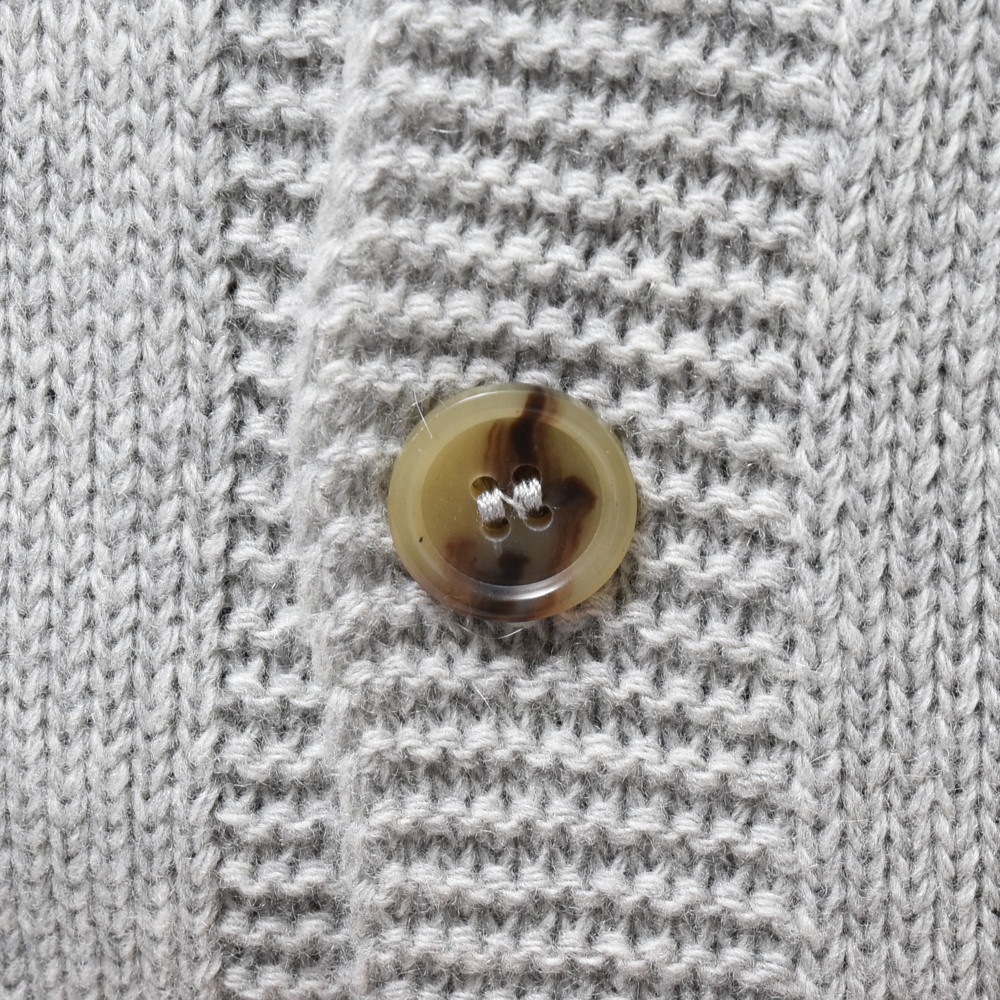程良く弾力のあるミドルゲージのウールカシミアニットを使用したma'ry'ya(マリア)のカーディガン。ぱっと見の感じはシンプルですが、ボタンを三つにしてミニマルな雰囲気を出し、前立て部分の編地に変化を加える事で単調にならないように工夫が凝らされています。
