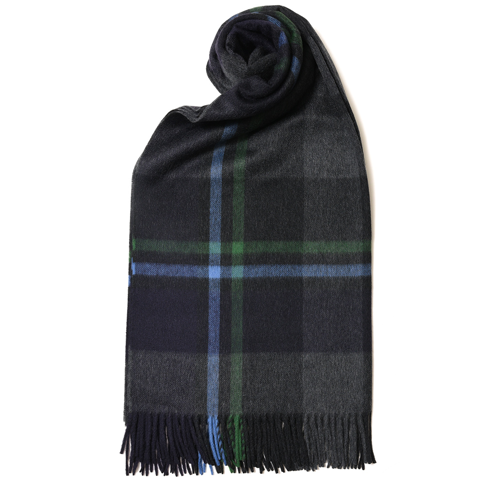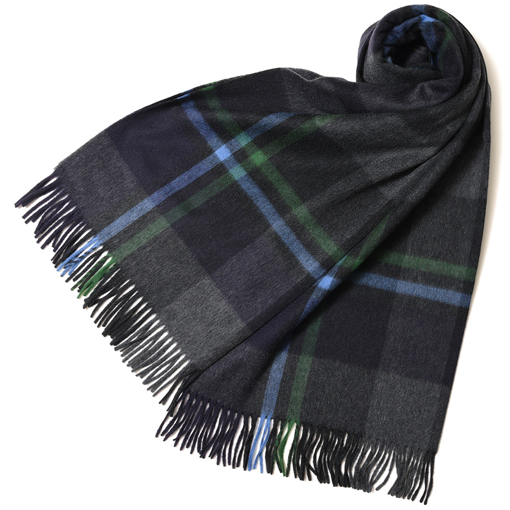 Joshua Ellis(ジョシュア エリス)ならではの色彩センスを楽しむことが出来るタータンチェックストール、大判タイプだからこそのダイナミックな見え方が印象的です。