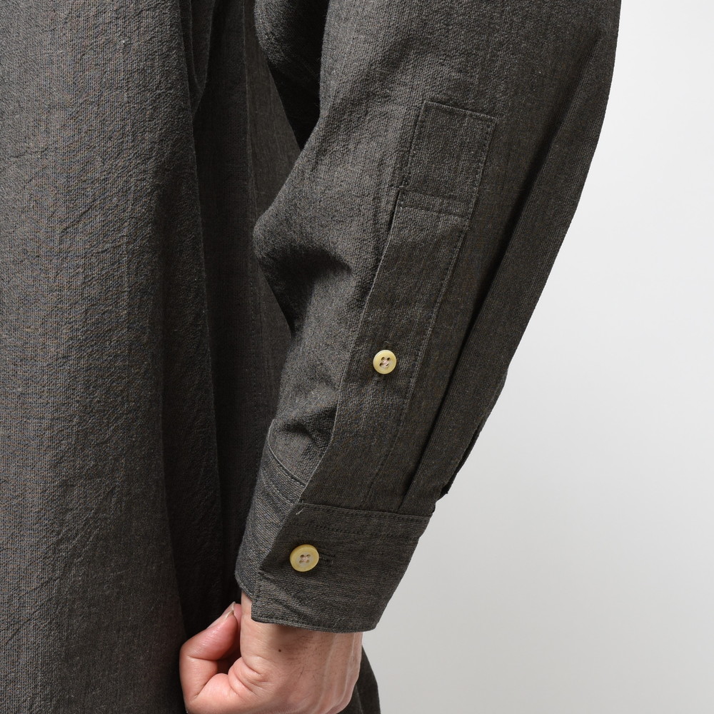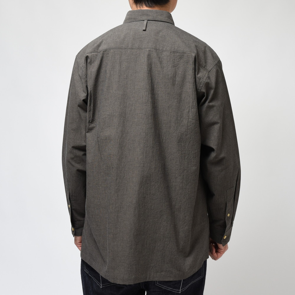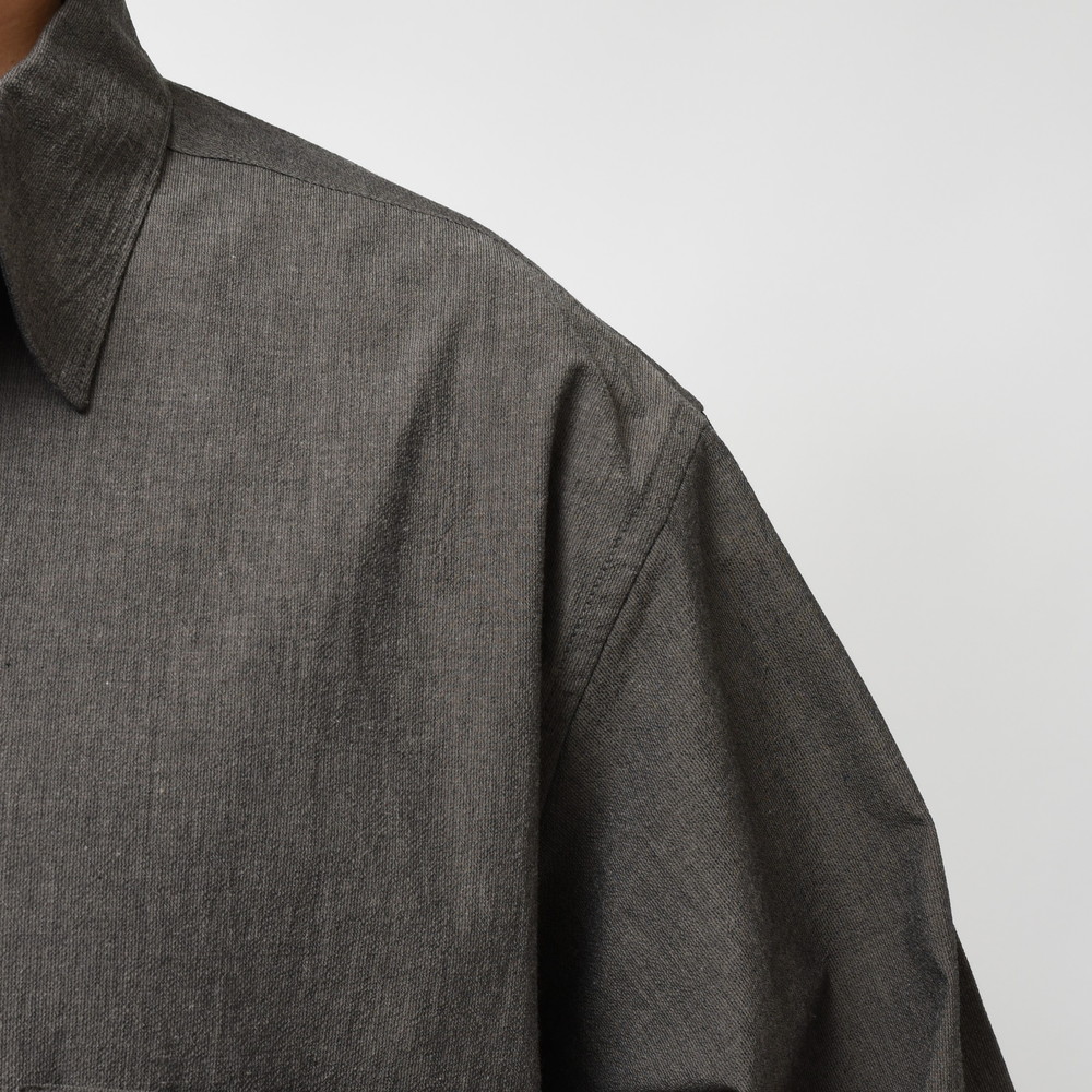 ミリタリーやワークといった要素をベースにしつつ、モダントラディショナルな表現が行われている印象です。こちらのシャツもその一つでして、ややゆったりとしたリラックス感のあるシルエットにサラッと取り付けられたポケット、気負い過ぎずそれでいて上品さも備えた仕上がりに。