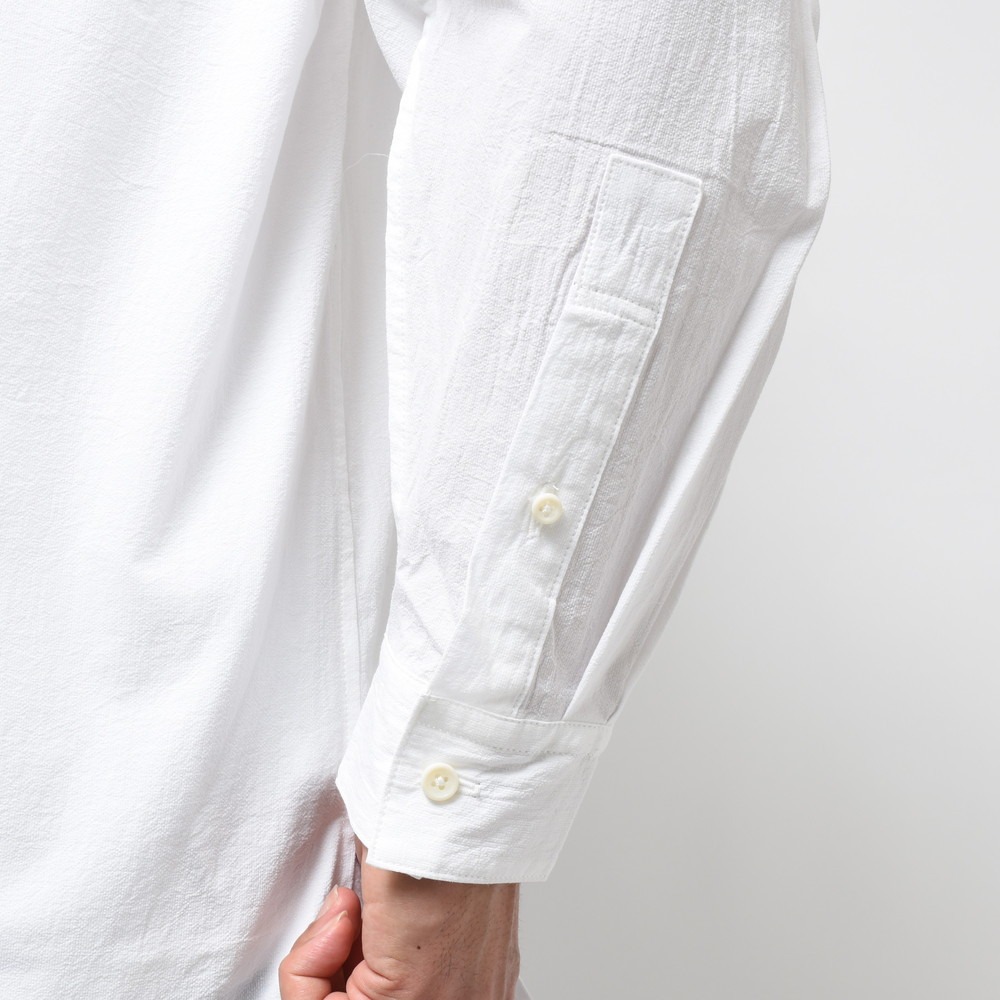 シャツは基本的にはカチッと着るものだと思っていますが、こちらは良い意味で脱力感があり、上品で清潔にしていながらも力みを感じさせないリラックス感があります。