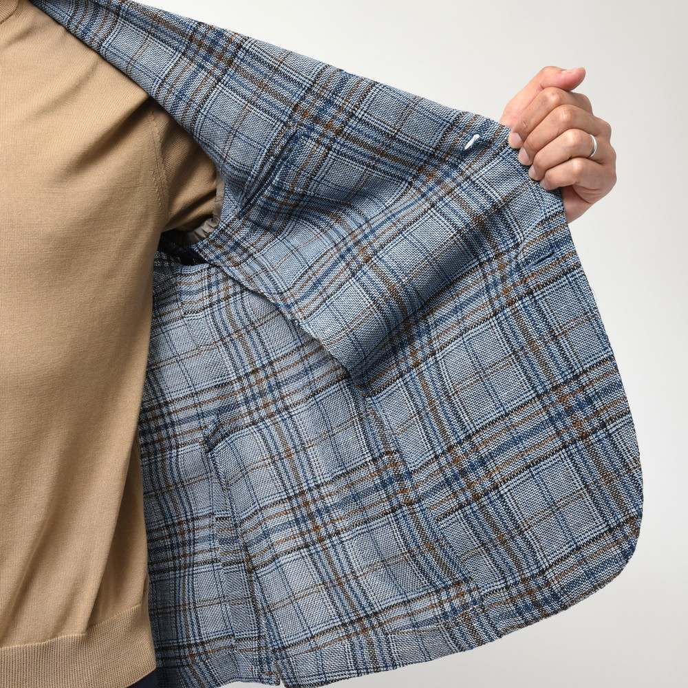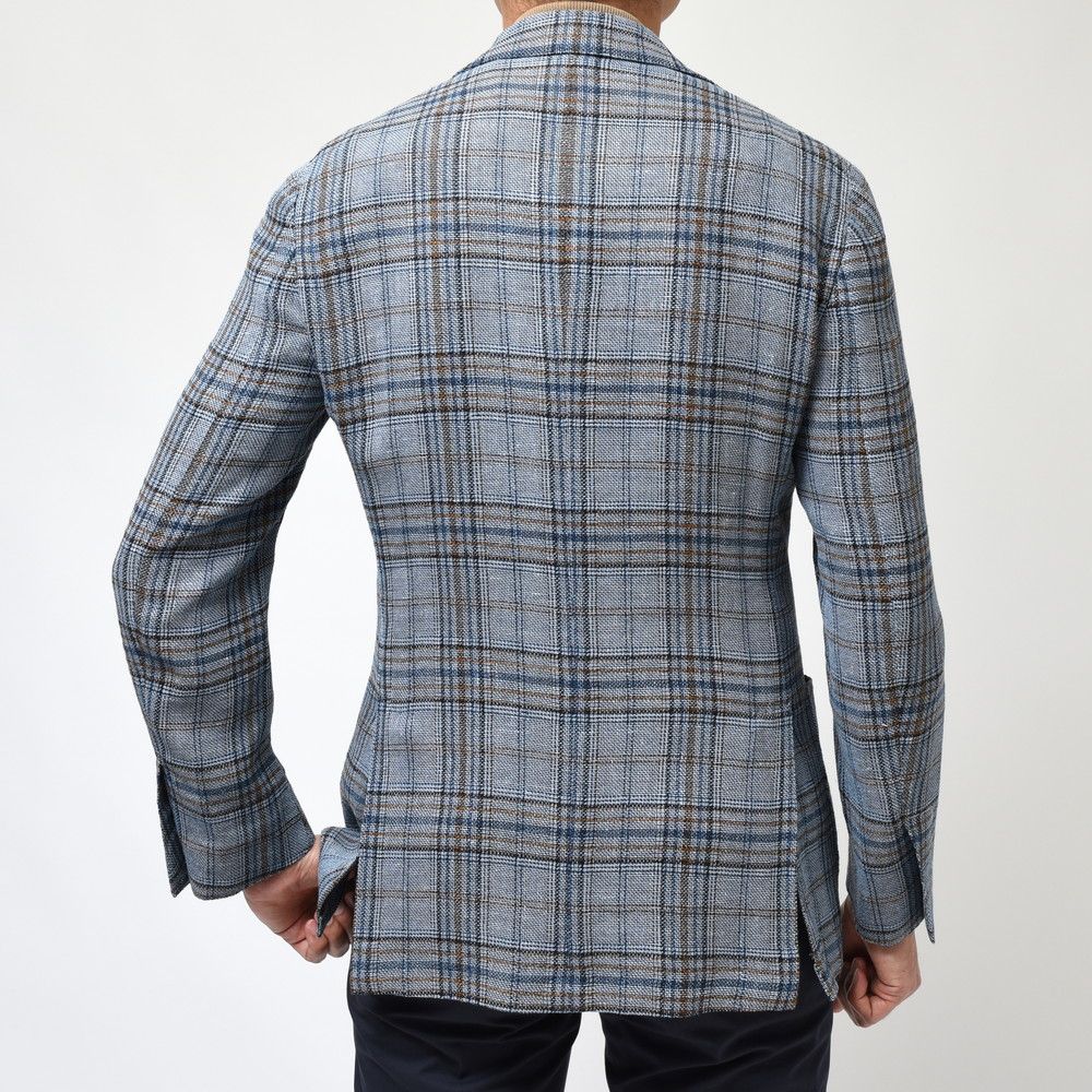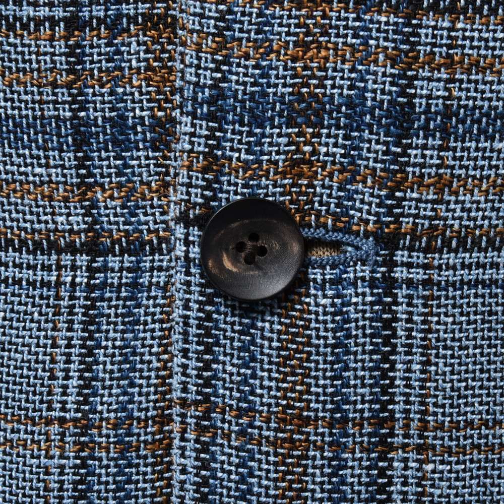 ちょっと珍しいのが、リネン×シルク×ウールの三者混生地。これをライトに染め上げ、生地を柔らかく、フェード感のある風合いに仕上げているところが特徴ですね。