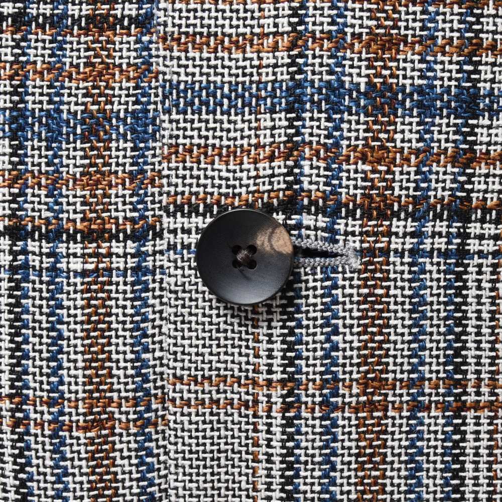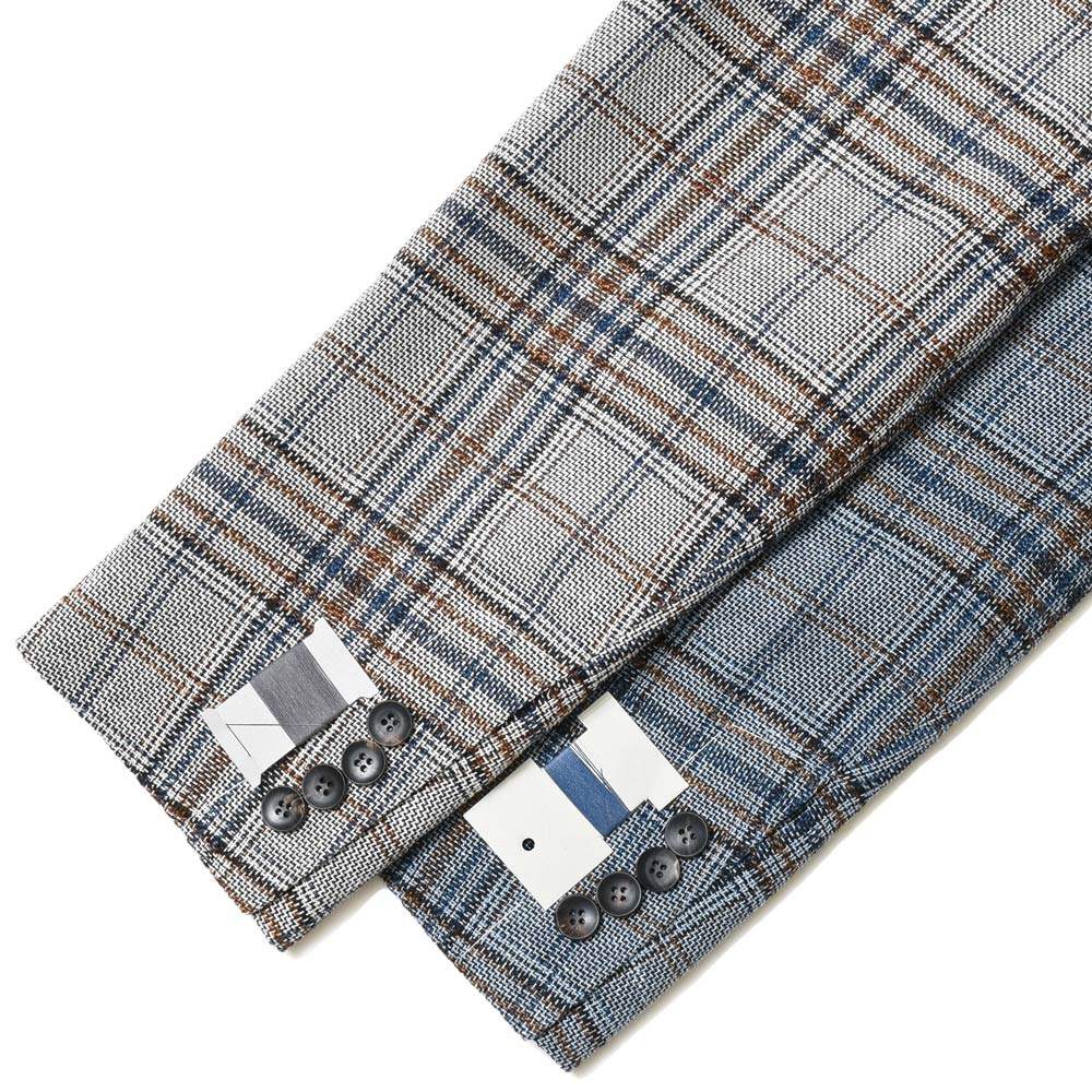 2パッチ3B、サイドベンツ、ラペル幅9cm、袖アンフィニッシュド(本切羽・開き見せなどの釦付け修理が必要)です。