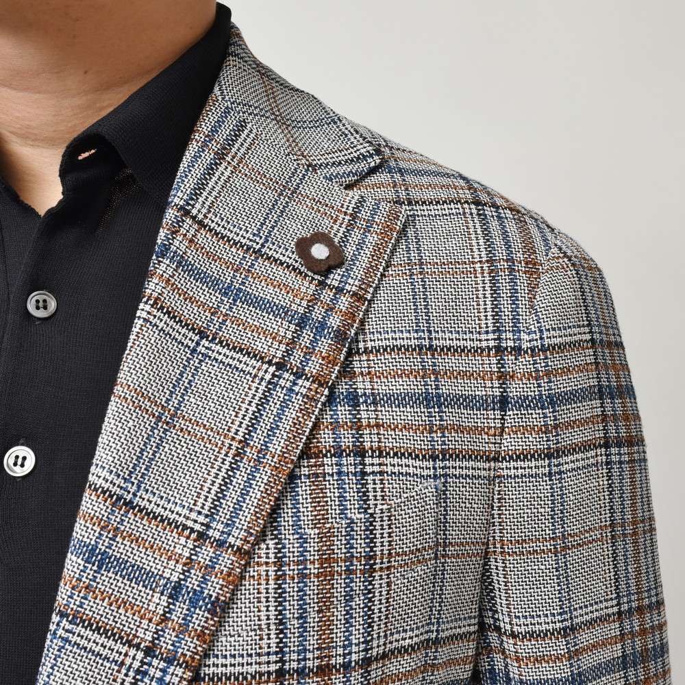 パキッとした見え方になることがおおいライトツィード系のタータンチェックをこのニュアンスで表現するセンスはLARDINIならではかと思います。