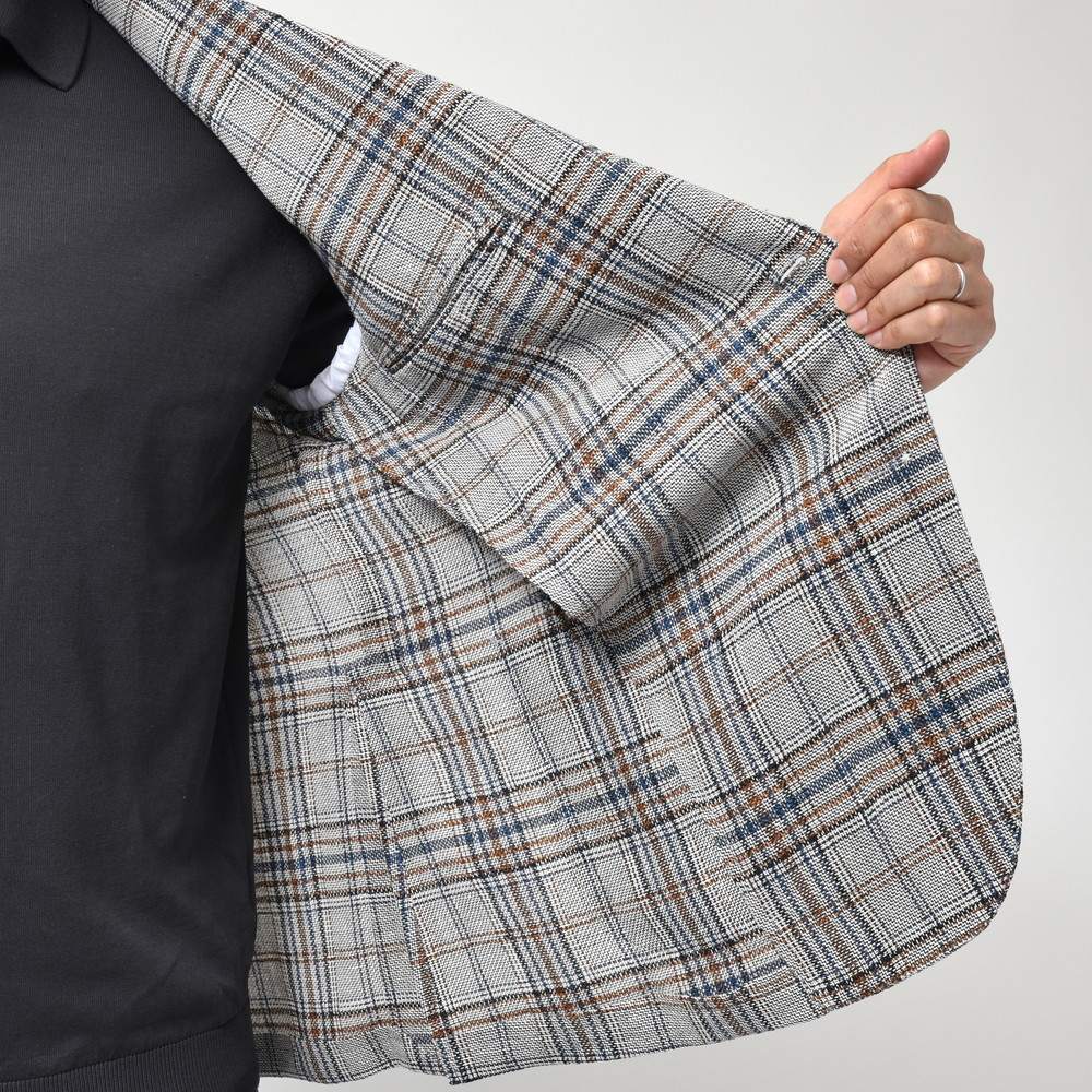 無地系の提案を多くgujiでは採用していますが、いつも良いチェックは探していまして、派手過ぎず生地の特徴を活かした落ち着いた柄が素晴らしいと思います。