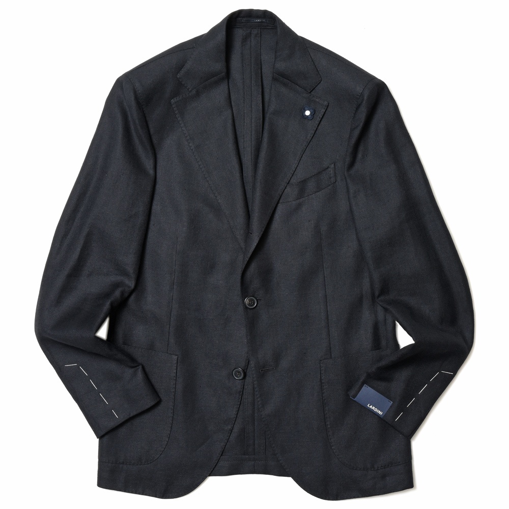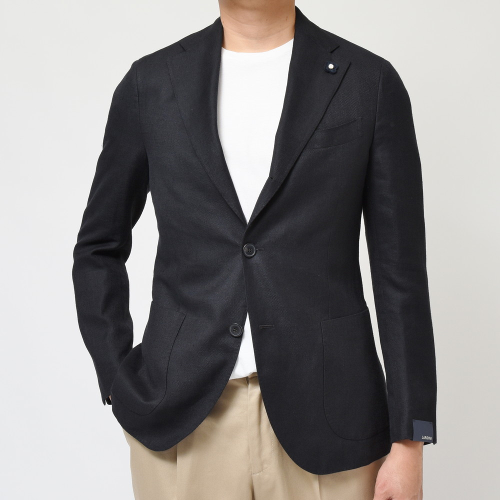 LARDINI(ラルディーニ)のブラックジャケットは生地感に特徴がありまして、リネン×ウール×シルクのツイル組織を採用です。
