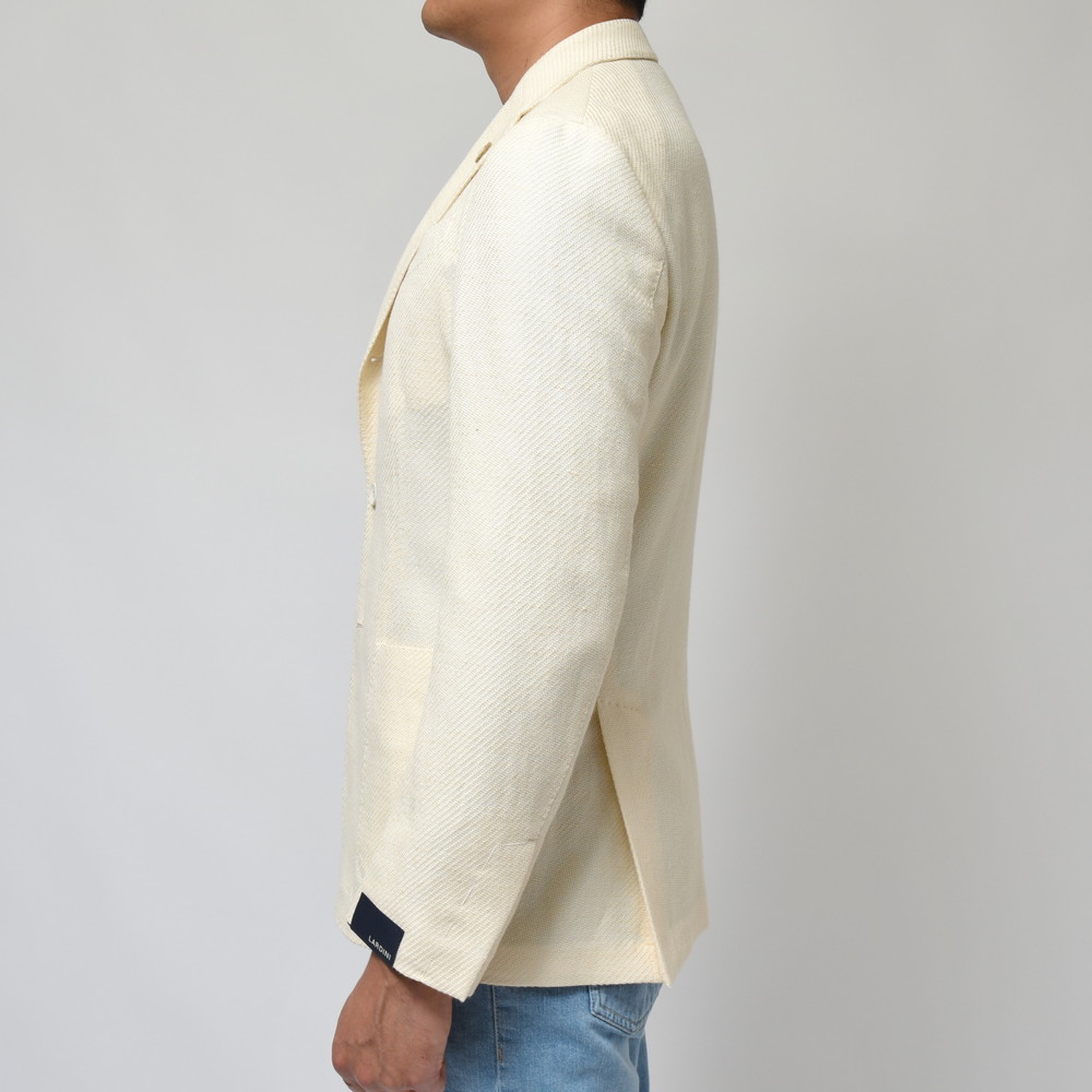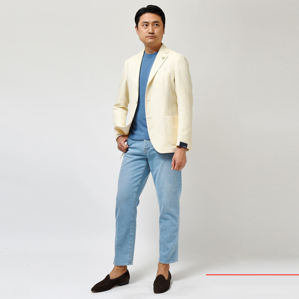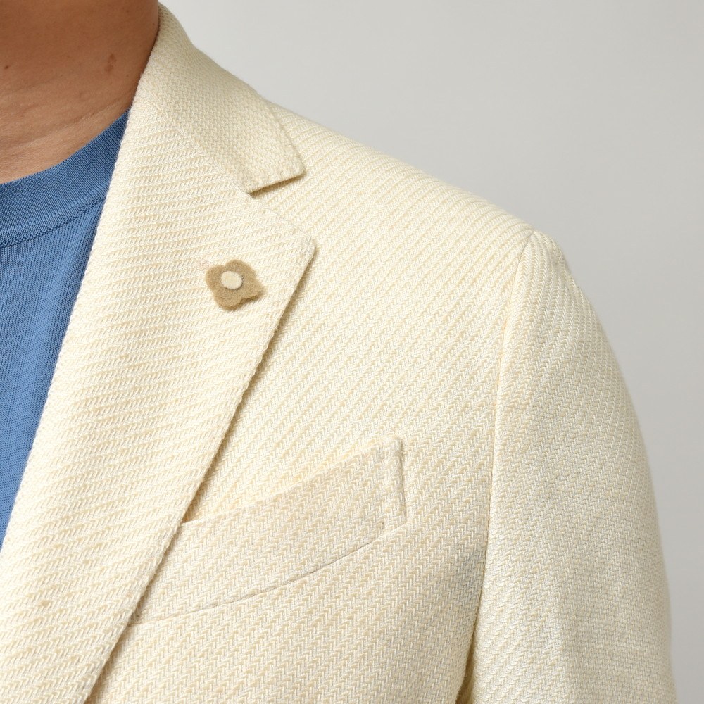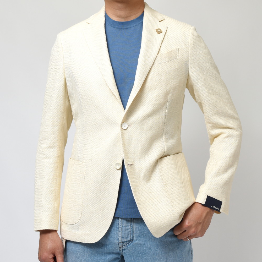 LARDINI(ラルディーニ)らしい、爽やかな色気とエレガンスを漂わせるエクリュカラーのジャケットはパキッとしたホワイトの様に気負わずに着られるところが秀逸です。