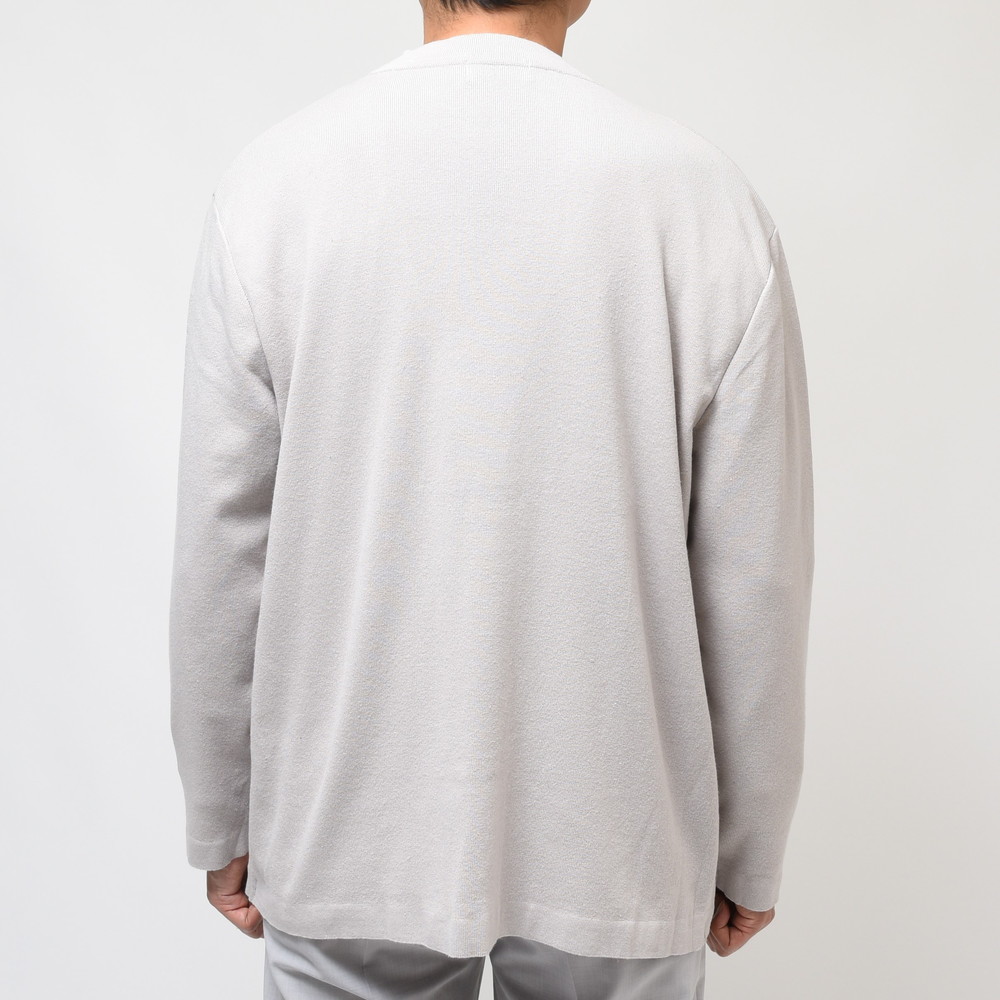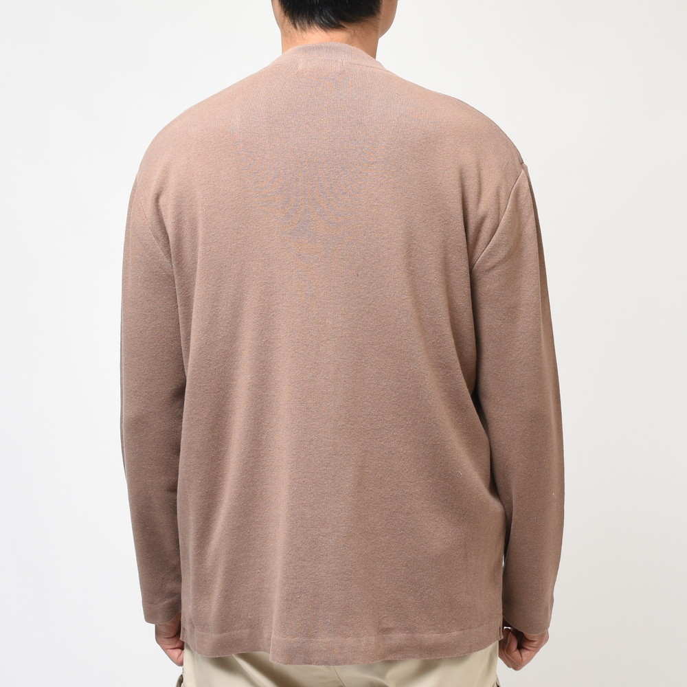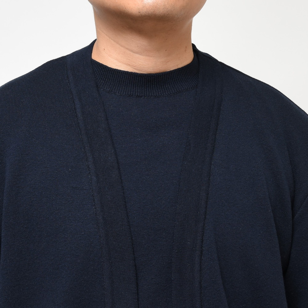 リラックス感のあるデザインですが、あえて落ち感の少ないニッティングにすることで羽織りとしての見え方を強めている印象で、この素材ならではといいますか、RENCONTRANTならではのデザインかと思います。