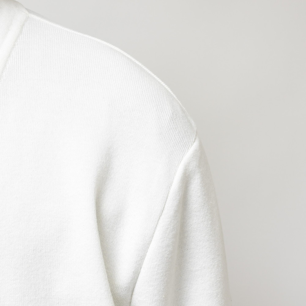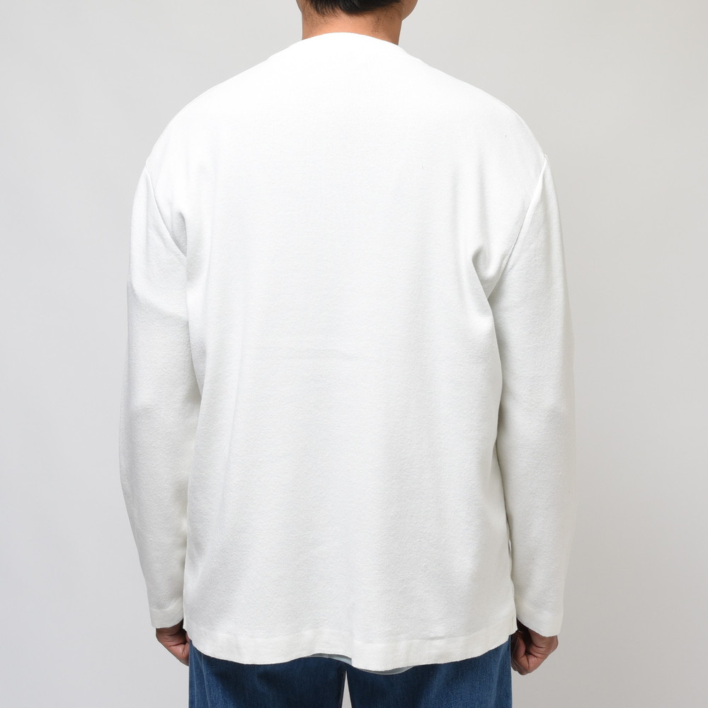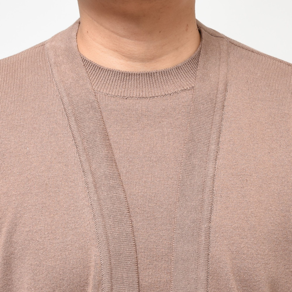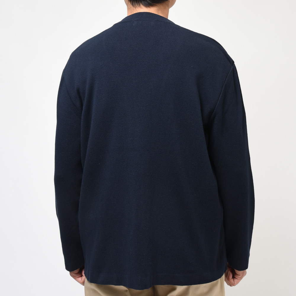 リラックス感のあるデザインですが、あえて落ち感の少ないニッティングにすることで羽織りとしての見え方を強めている印象で、この素材ならではといいますか、RENCONTRANTならではのデザインかと思います。