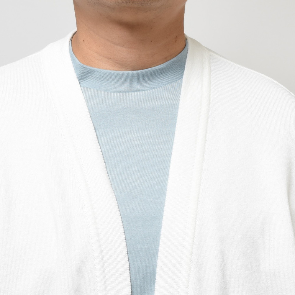 ボタンレスカーディガンの火付け役?と言っても過言ではないかもしれないRENCONTRANT(レンコントラント)、主にシルク素材をメインに展開してきましたが、今回は少し趣向を変えてコットンラミーナイロンの清涼感、吸水性、丈夫さを持った素材でご用意させてもらいました。