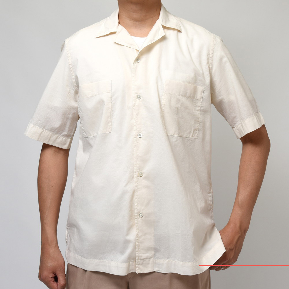 こちらのチョイスはほんのりと透け感のある、柔らかで清涼感のあるコットンローン。ブロードやオックスにはない軽やかさがあり、リラックス&コンフォートなショートスリーブシャツにベストマッチなファブリックです。
