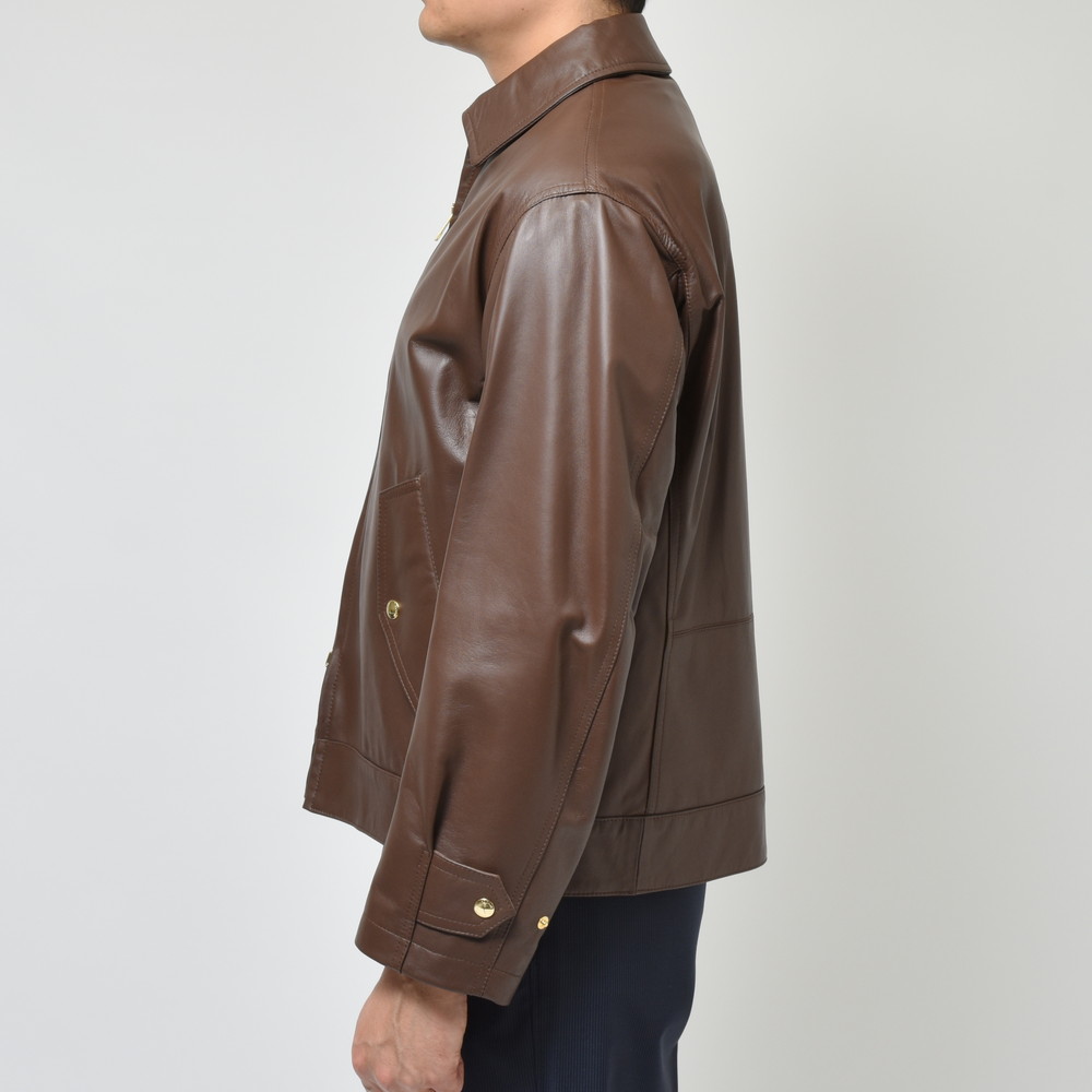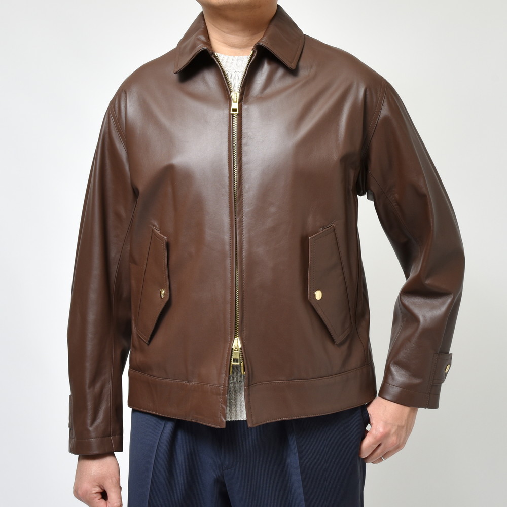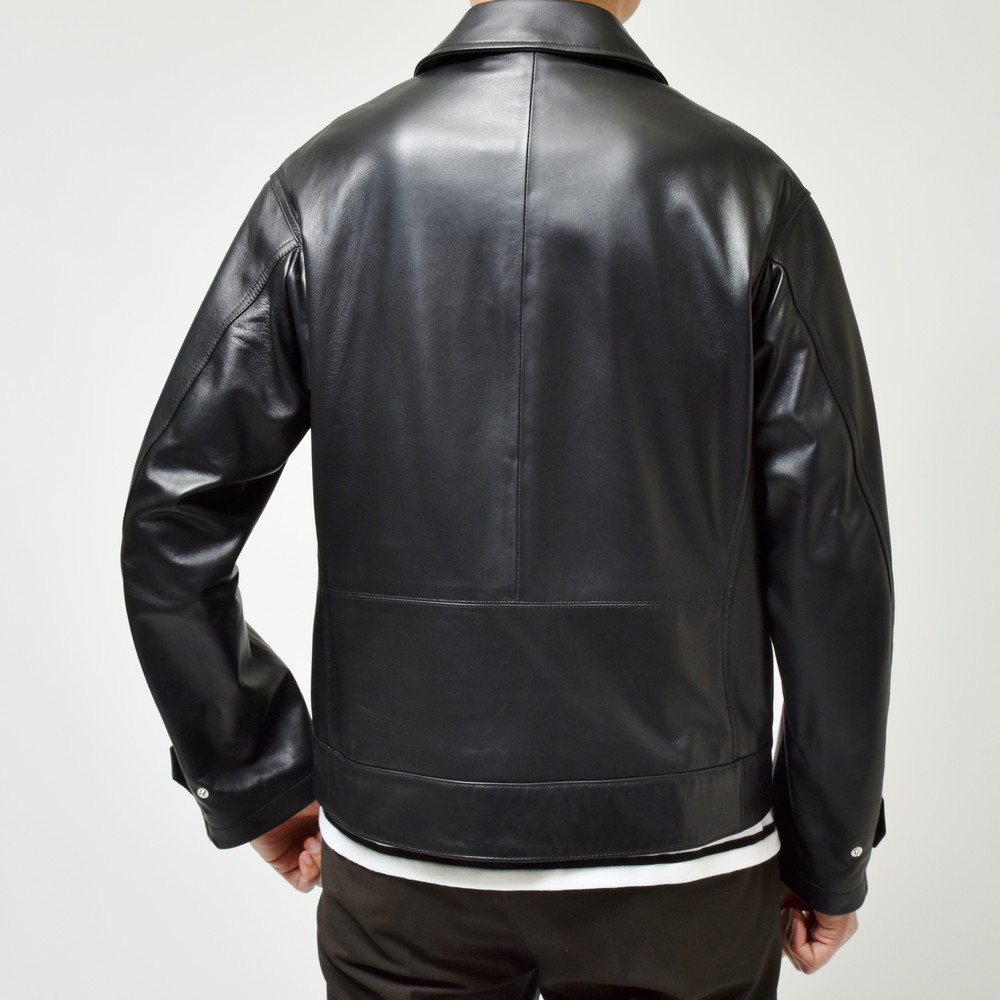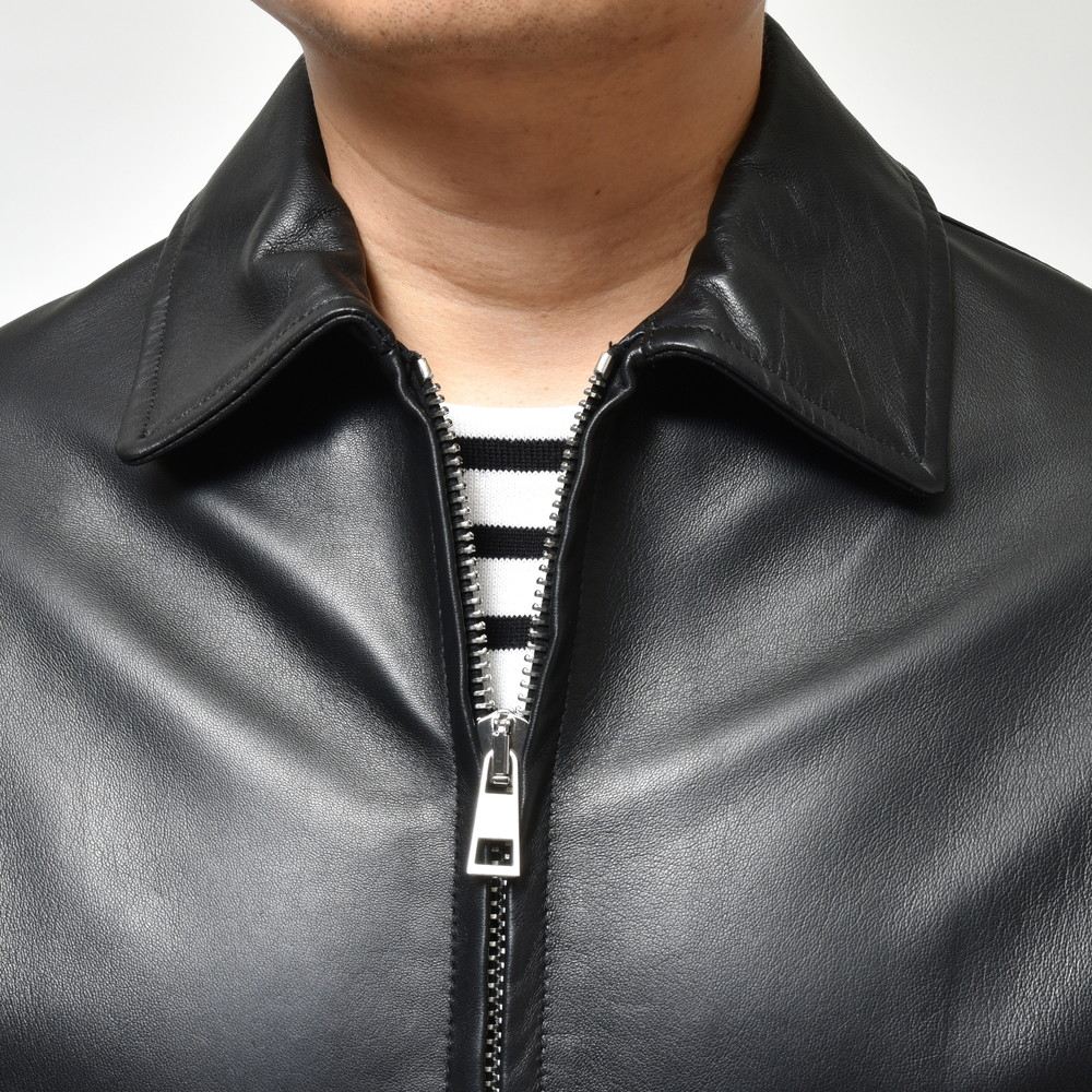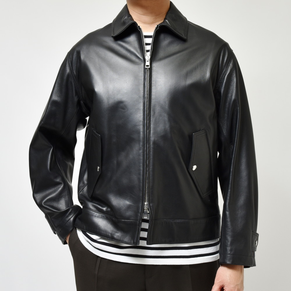 ドロップショルダーや身幅にゆとりがあるリラックスしたシルエットはレザーの武骨さを強調することなく取り入れやすいレザージャケットです。