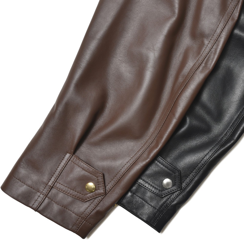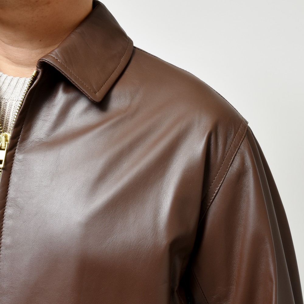 たっぷりとしたアームやストンと落ちるボクシーなシルエットなど、従来のレザーではあまり見られないリラックス感が特徴のオーバーサイズモデルです。