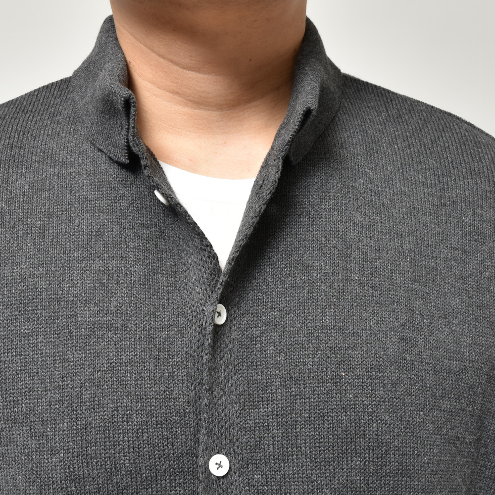 今回の展示会で一番良いなと思ったのがこちらのニットシャツでして、サクッとTシャツの上から着るだけで良い感じに見える塩梅が良いんですよね。