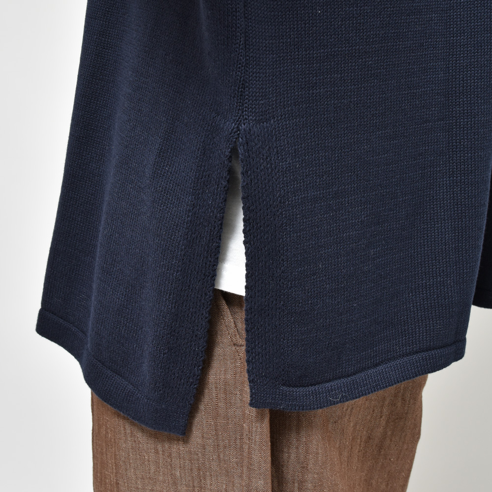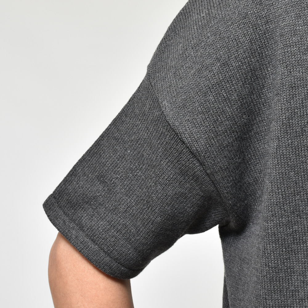 肩幅広め、袖短め、身幅ゆったり。ma'ry'yaらしいシルエットバランスを採用しつつポロのような襟とボタンの配置。それでいて前は開くようになっています(かぶりではなく羽織りになります)。