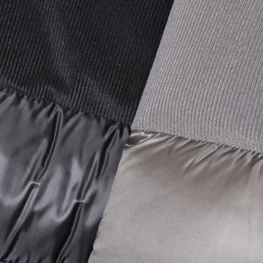 コーデュロイ部分はコットンではなくポリエステル素材を採用し、敢えて艶のあるタッチの物をチョイス。