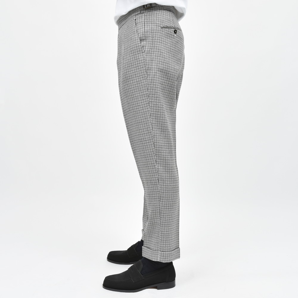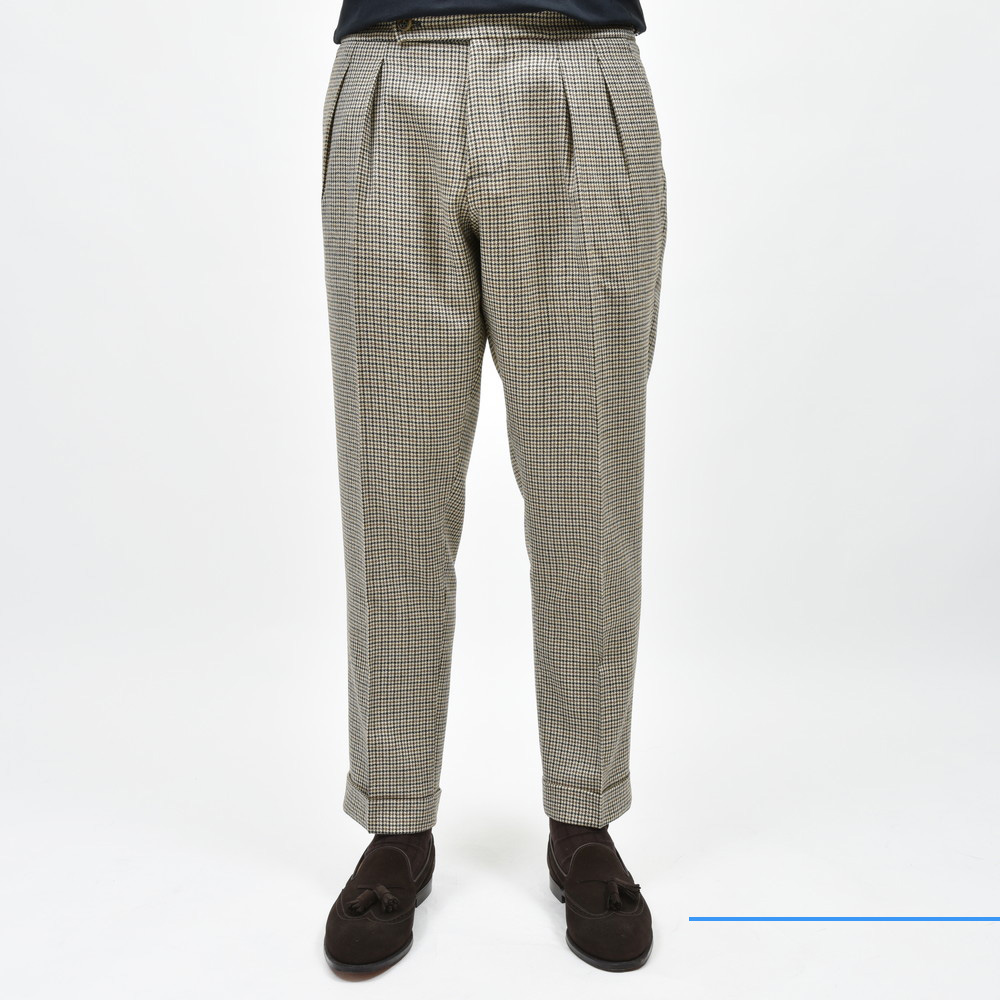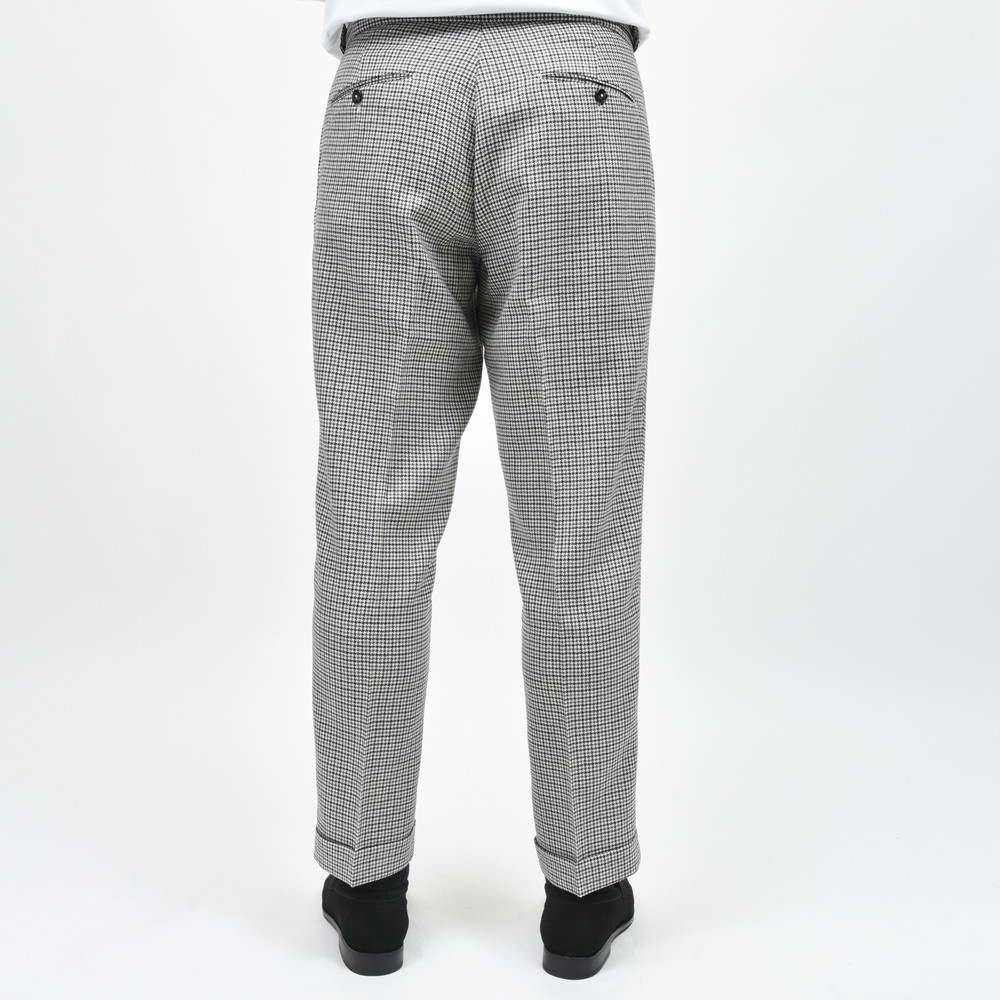BERWICH(ベルウィッチ)のSCOTCHスコッチ、既に市民権を得たと言っても過言ではないキャロットテーパードフィットなシルエットですが、プリーツの入れ方やハイバックのディティールでドレス要素を取り入れて全体をクリーンに見せているところが人気の秘訣です。