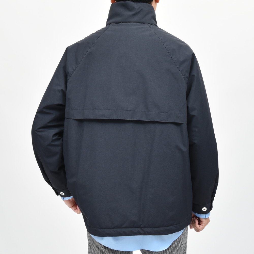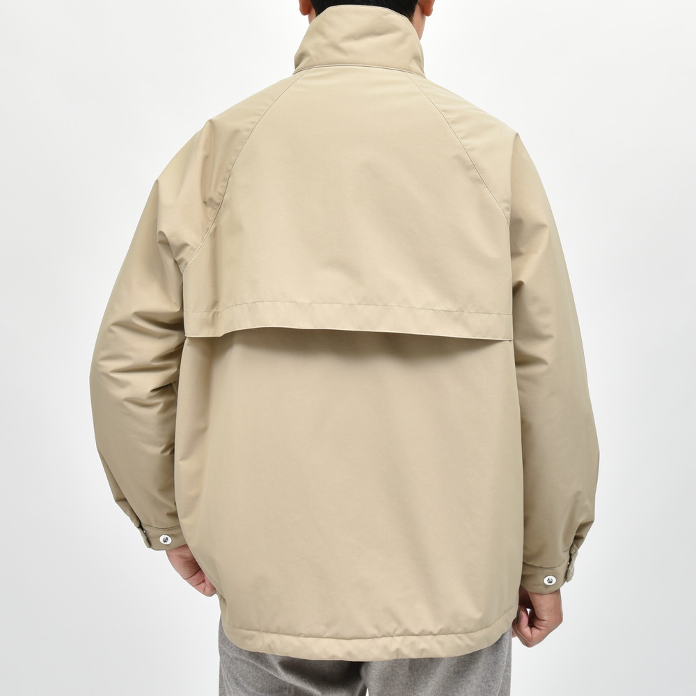 こちらはスタンドカラータイプのリラックスフィットブルゾンで、シート状に薄く加工したリサイクルダウンをセットしたパデッドタイプです。