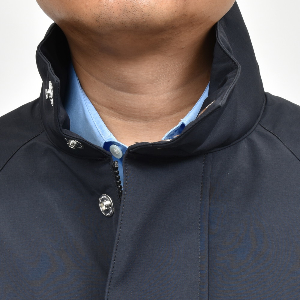クラシックレインウェアのイメージを損ねていないクリエーションというがとにかく秀逸。こちらも防水性のあるファブリックですし、きっちり機能を備えながらシルエットが今の気分というところが最高ですね。