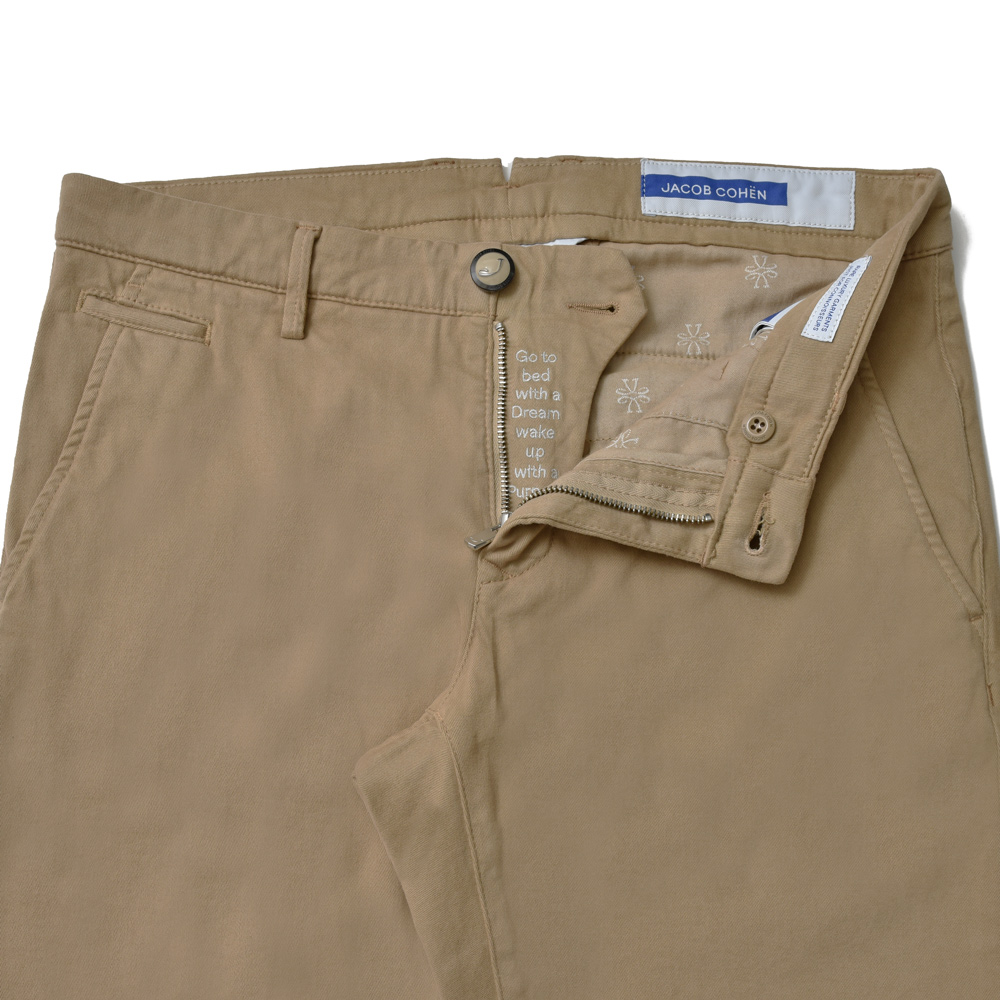JACOB COHEN(ヤコブコーエン)のBOBBY、シルエットはスリムテーパードでジップフライ、ポケットはスラントでシャープな印象の一本。ジャケットスタイルとも相性の良い上品さがポイントとなります。