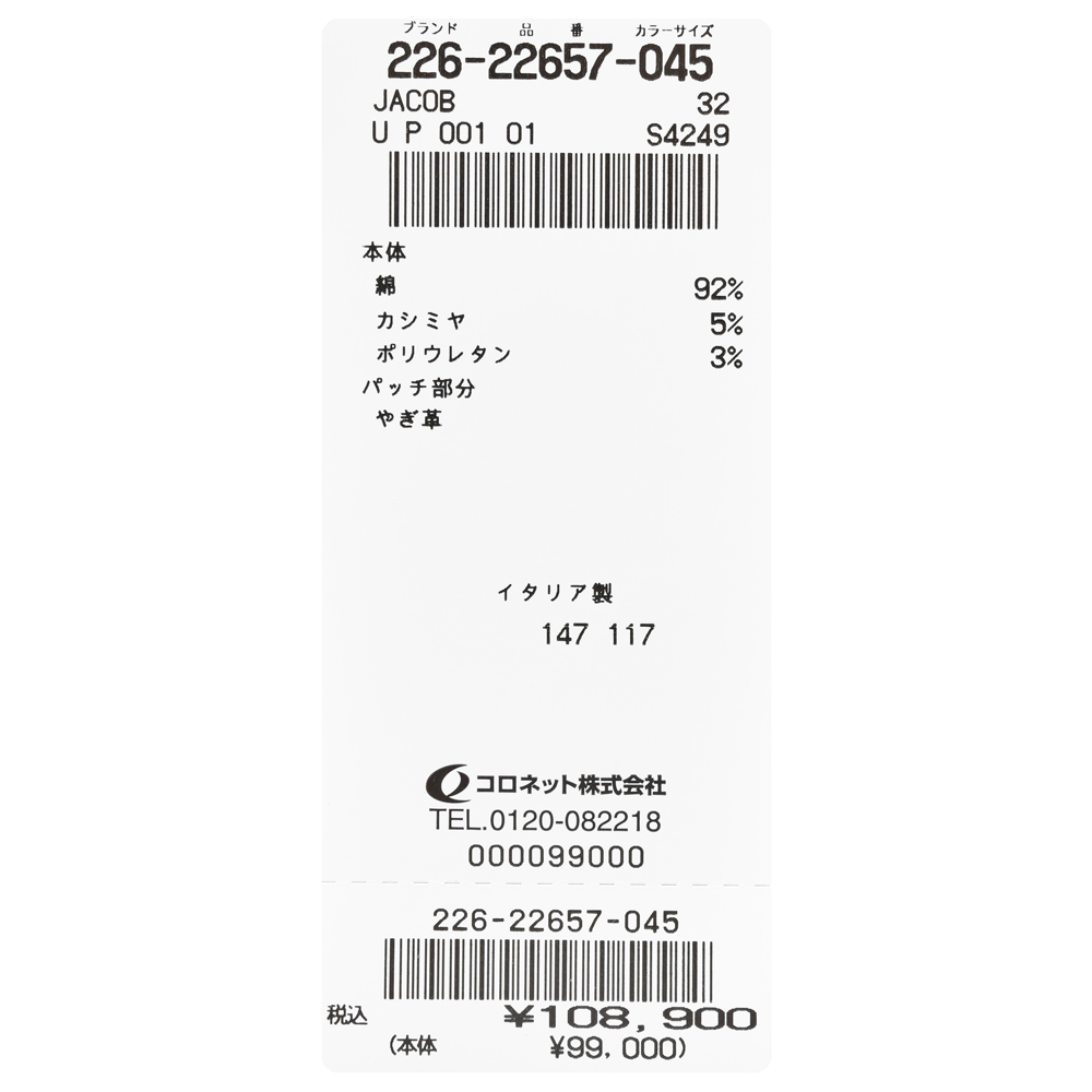 : 本体:コットン92% カシミヤ5% ポリウレタン3%