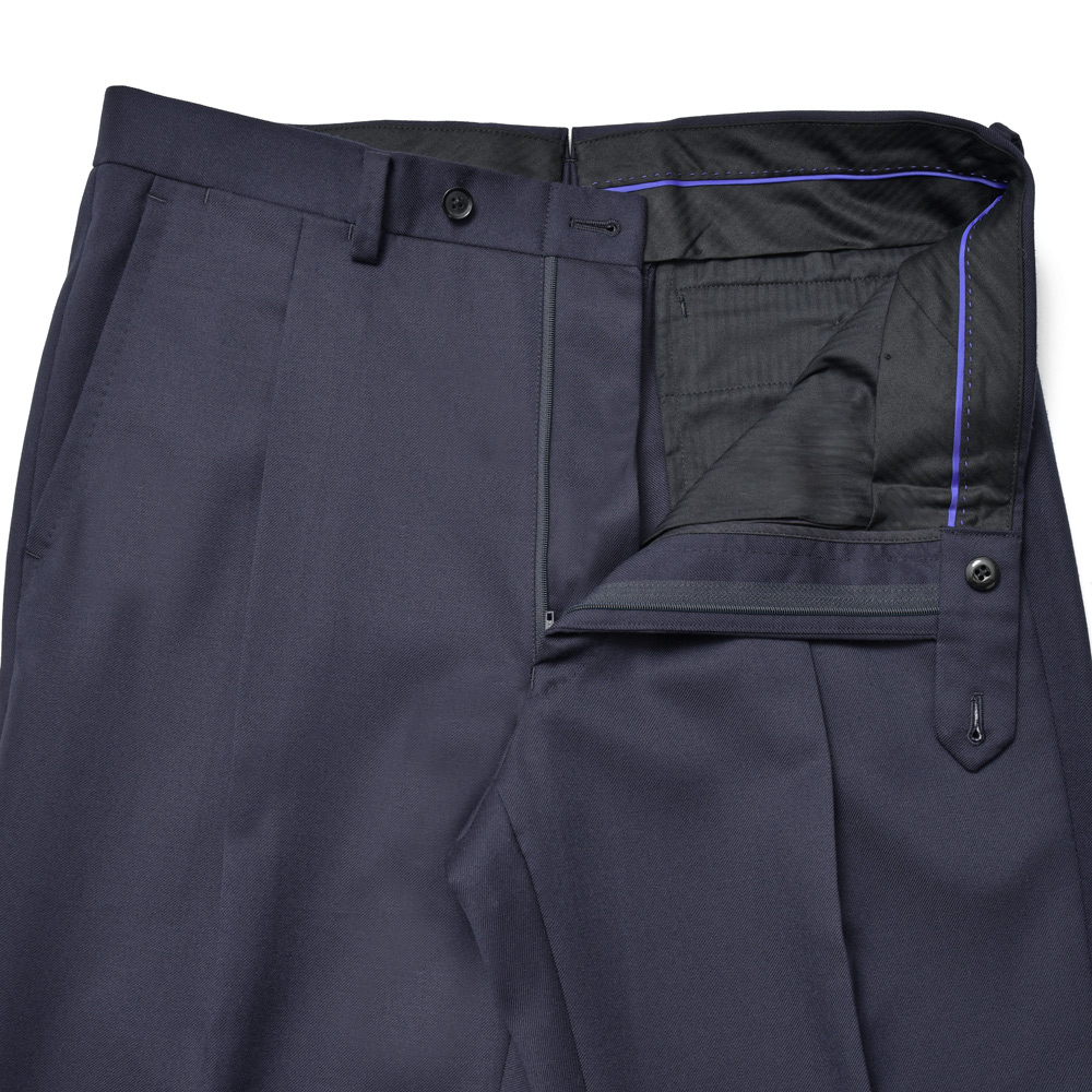 生地はシンプルに、クリーンさと耐久性を考慮したSUPER100’sウールサージ。